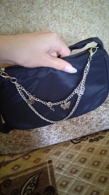 Сначала сумка показалась очень маленькой и совсем не вместительной,но это не так.Запах присутствовал,но быстро выветрился,что является плюсом.По ткани я ожидала лучше,но за такие деньги сумка своё оправдывает.В комплекте шла цепочка с прекрасными бабочками ,есть ушки для этой цепочки.Оценю на 8,5/10