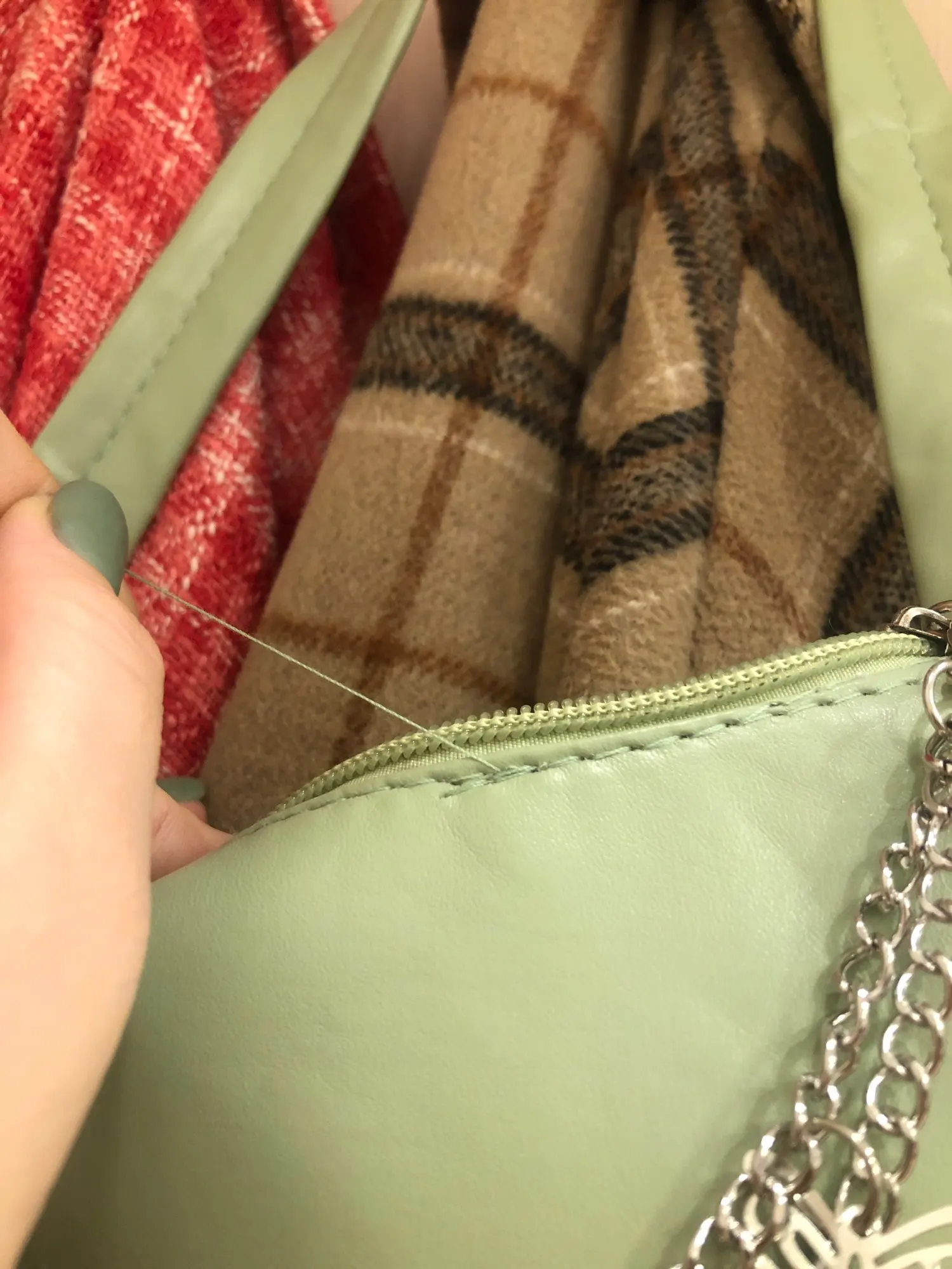 Сумка красивая,цвет немного темнее чем на фото,но мне нравиться.торчит 3 нитки,на одном месте очень неровно прошито. Ремешок вообще пришит другой стороной. Вряд ли я смогу это исправить.