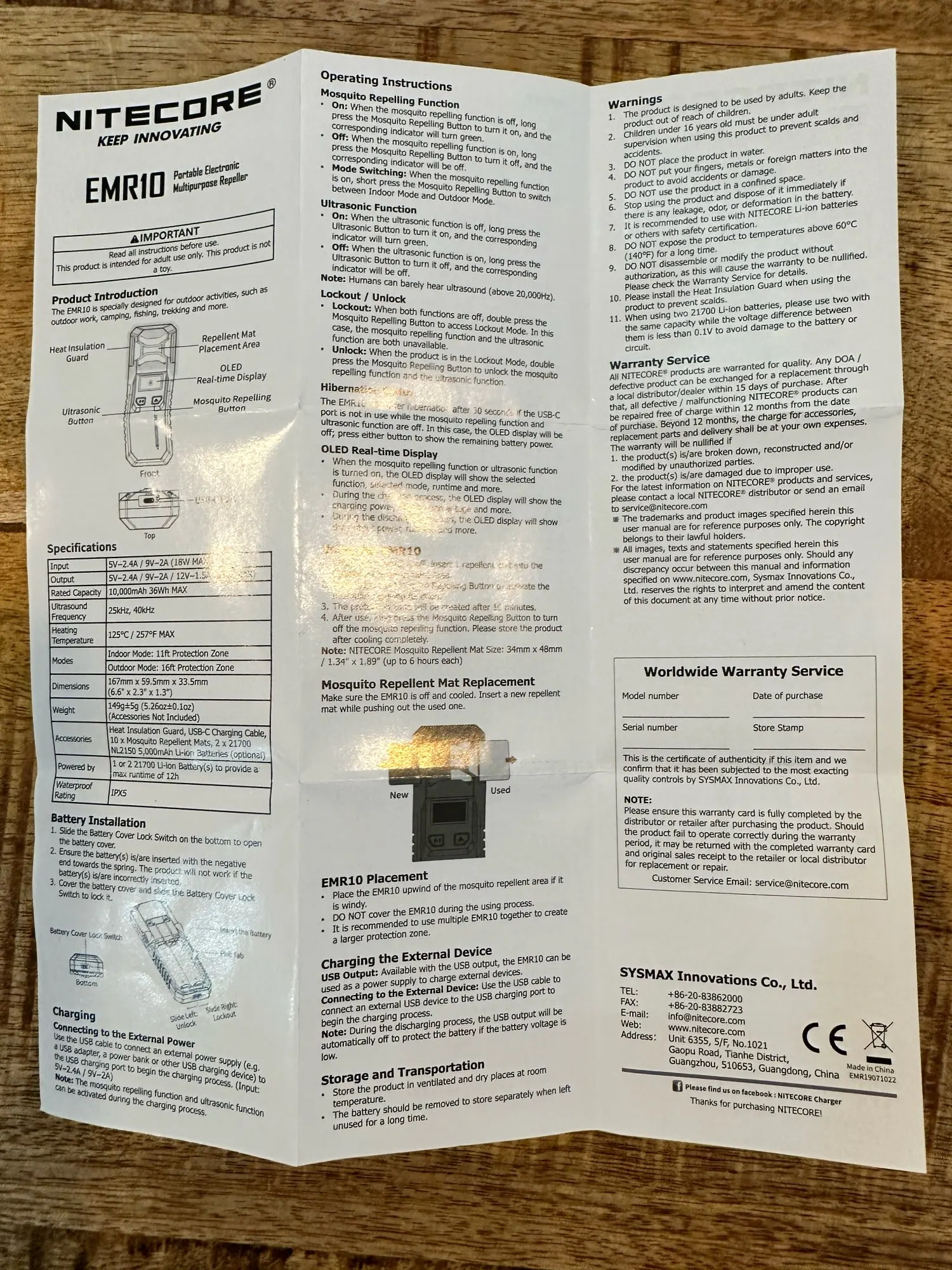 Ультразвуковой отпугиватель грызунов Nitecore EMR10, 18 Вт