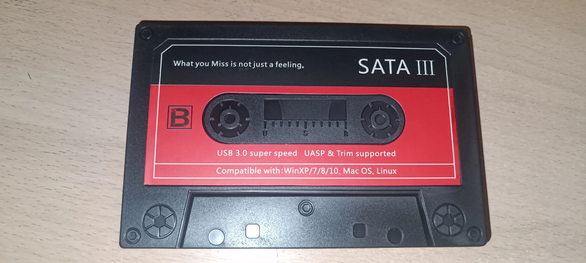 Бокс для жесткого диска прикольный, в виде кассеты. В реальности выглядит лучше чем на фото, сделано все качественно нет следов брака или следов литья, установить жд очень легко, сам короб защелкивается очень крепко ( сам просто так не раскроется ). Мас Хев прям рекомендую, очень понравился и цена и качество и выглядит, многих уже успел удивить. По скоростям не могу сказать не засекал, у меня в ком включен удлинитель и из за этого он не работает, если подключить на прямую к ноуту или usb порту Пк, то все летает на ура.