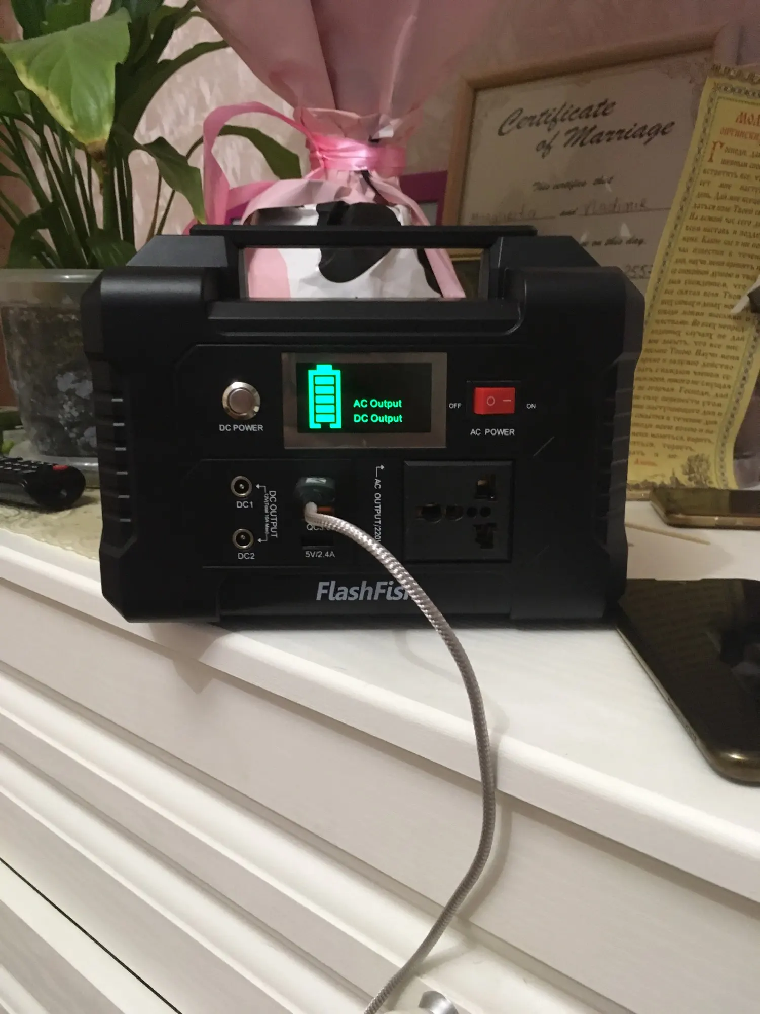 Доставка СДЭК 5 дней. Станция функциональнее предыдущей модели. Взял опять из-за обещания чистого синуса и не ошибся. Из минусов то что сборка из 18650 , не знаю, 12 или 15 штук Liion. Есть вероятность возгорания, предидущая была на lifepo4. Сильно глючила BMS.Залить удавалось максимум 128 WH из 151 WH. Эту ещё в ноль не разрядил. Пришла 12.23 V , разрядил до 11.32 , но все равно -1 палка всего. Порты работают как описано, Быстрая зарядка , UC3.0 есть. Но греется USB панель. При нагрузке 220V 12 W включается кулер раз в 5 мин примерно на 30 сек. Достаточно шумный. В старом обороты зависели от нагрева. Визуально исполнение стало лучше. Более 100W AC не нагружал, работает, старт плавный, выходное стабилизировано на 218 V. При неизвестной нагрузке лучше включить нагрузку, затем кнопочку. Нарастание U плавное, в случае перегрузки отключится без потерь. Протокол 3.0 вроде правильный, не пытается заряжать планшет повышенным напряжением. Учитывая покупку по акции своих 100 usd стоит.RU s. 31 августа 2022