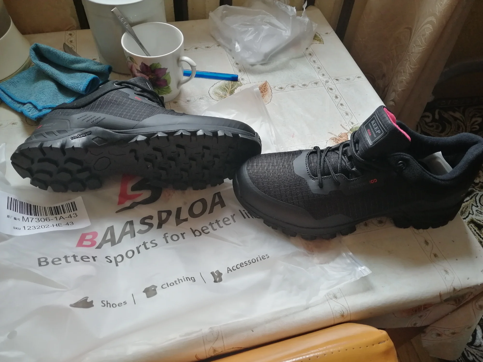 Скорость доставки объединенной посылкой средняя - 17 дней до Моск.обл. Трек отслеживался. Для посылки использовался пупырчатый полиэтиленовый пакет. Обувь выглядит неплохо. Прошито аккуратно, нитки почти не торчат, подошва проклеена аккуратно. Подошва при ходьбе ощущается, как средней жесткости. На свой 42 размер я взял обувь 43 размера и она мне впритык – можно было попробовать и 44 размер. Опробовал кроссовки при температуре +7 град, и считаю, что на простой носок при активной ходьбе их можно носить при температуре примерно от 0…+5 град. Материал верха кроссовок обладает водоотталкивающими свойствами – вода не впитывается, а скатывается. Есть вопросы по долговечности обуви – уже после оплаты нашел у другого продавца отзыв покупателя, у которого после месяца активного использования подошва стерлась до дыр. Если это так и обуви хватает не более, чем на сезон, а такое исключать нельзя, то больше такие не куплю.