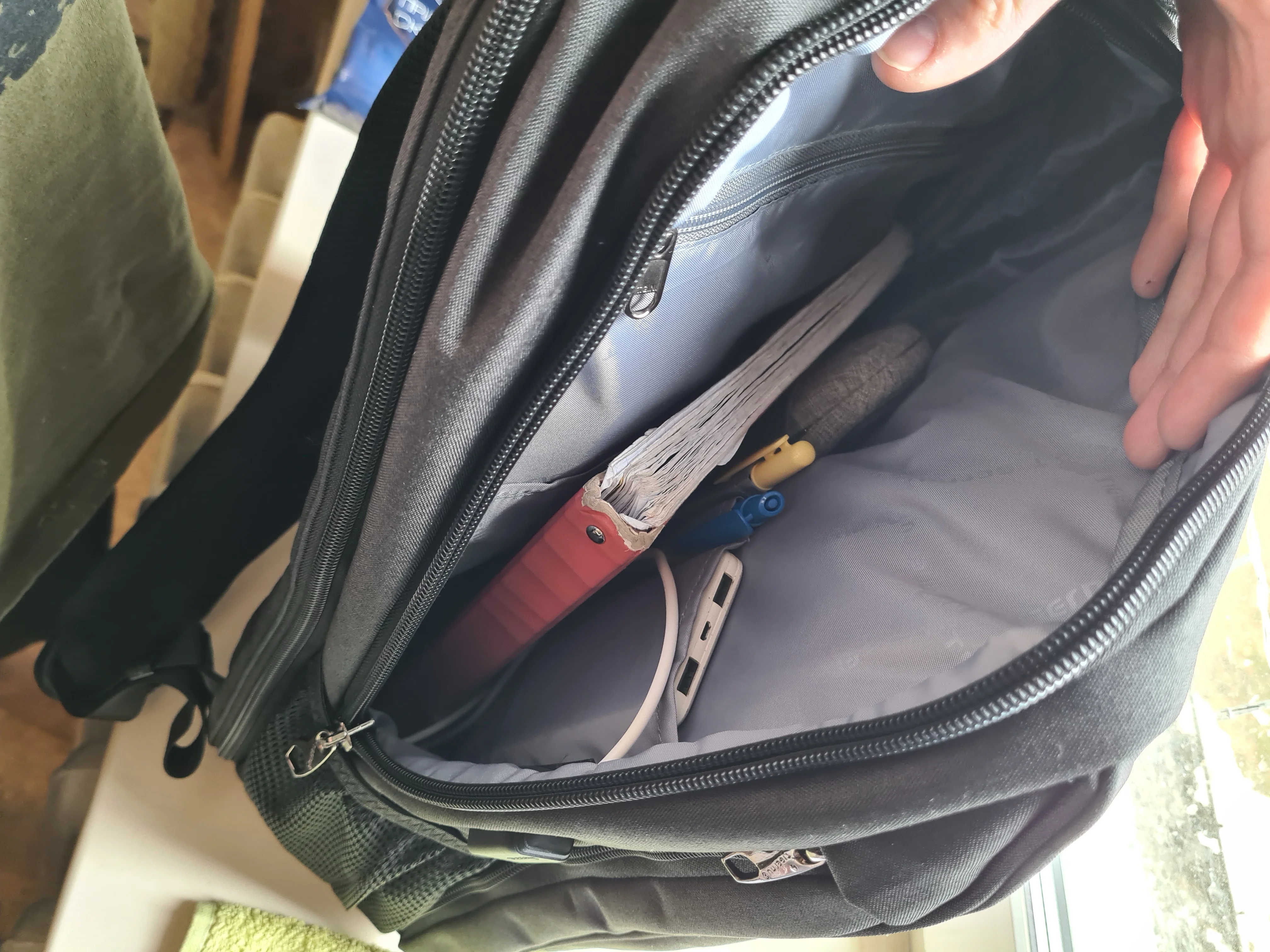 Очень крепкий и хороший рюкзак с большим количеством отделений. Невероятно вместительный. Подойдет для тех, кто носит очень много (!!!рюкзак большой, в каком-то плане громоздкий!!!) на учебу, работу подойдет для небольших поездок. В случае, если вы берете его для того, чтобы носить пару тетрадей/блокнотов и компьютер, стоит найти вариант поменьше. В моем случае для учебы мне нужно и ноутбук носить с графическим планшетом, и обеды, и тетради, и краски. Короче говоря, студентам-художникам пойдет идеально. В кармашек на лямке спокойно влезает карточка, провод-переходник для пауербанка в комплекте есть. я постралась набить рюкзак до отказа, но он все равно больше выдержит