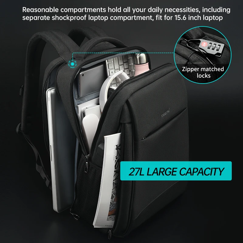 Tigernu Пожизненная гарантия, лучший дорожный рюкзак для мужчин, рюкзак с защитой от кражи для ноутбука 14-15,6 дюймов, мужской рюкзак, повседневный рюкзак для школы