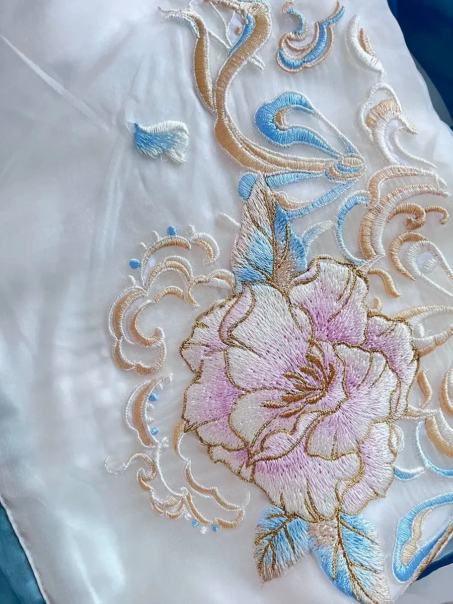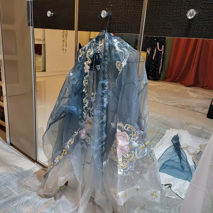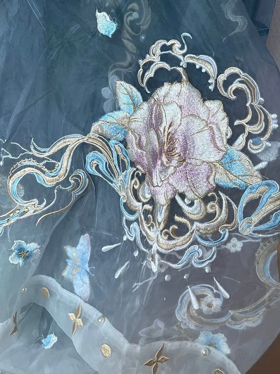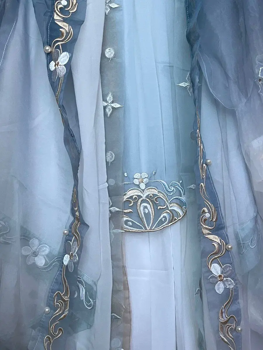 Женское традиционное платье Hanfu с вышивкой в стиле древнего китайского традиционного ханьфу, женская модель, летнее синее платье Hanfu для женщин