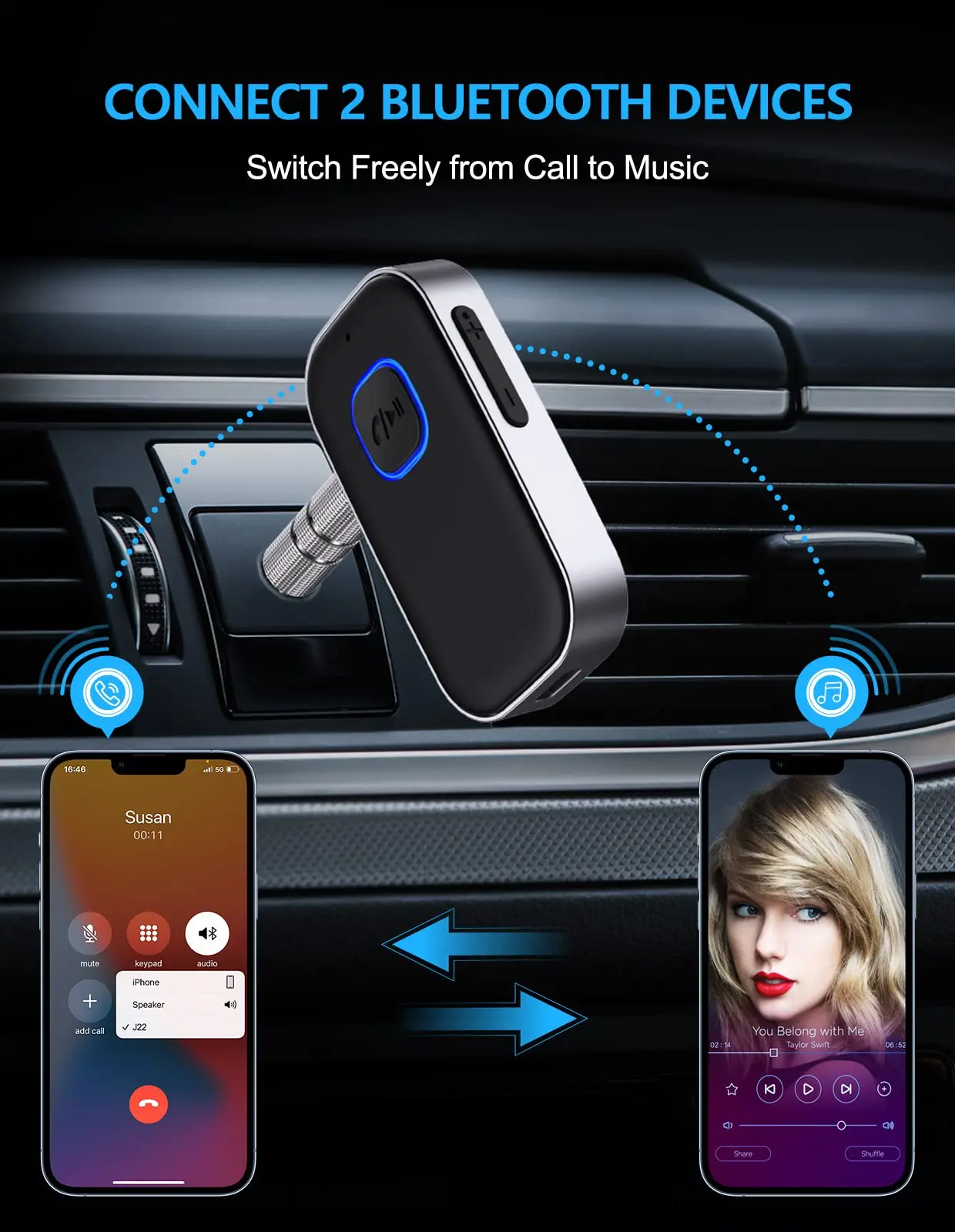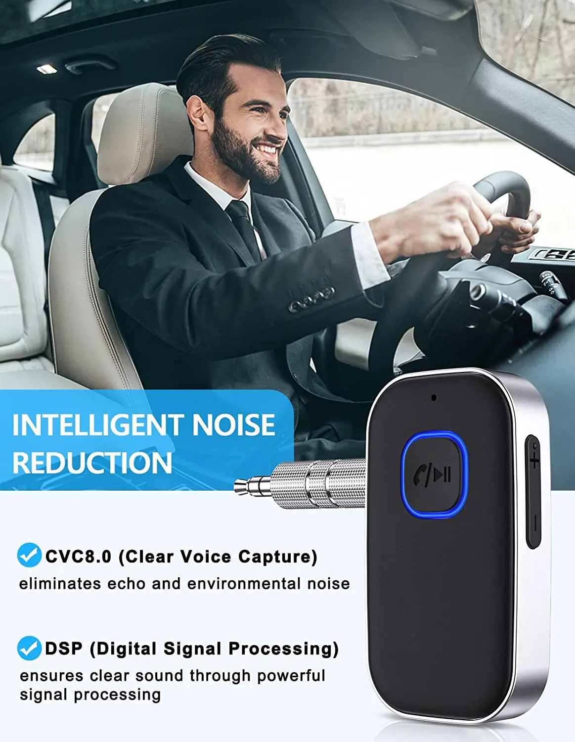 Приемник Bluetooth 5,0 для автомобиля, адаптер AUX, музыкальный ресивер Bluetooth для дома, стерео/проводные наушники/звонки в режиме громкой связи, аккумулятор 16 часов