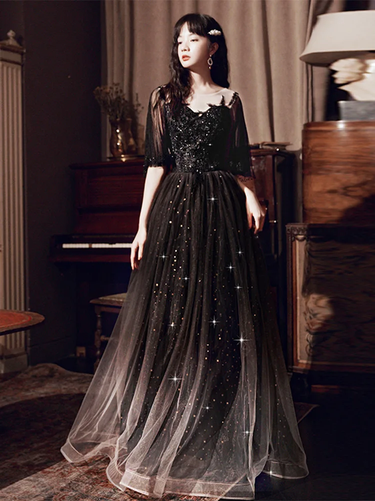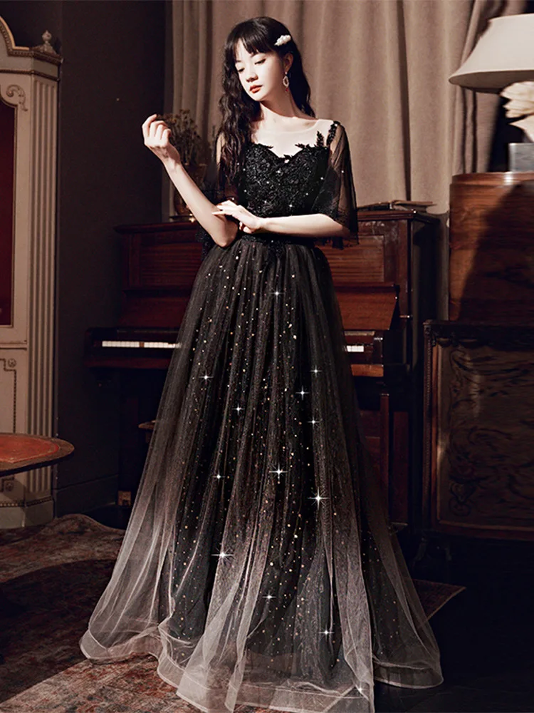 Кружевное платье-Ципао в пол с круглым вырезом, аппликацией и блестками