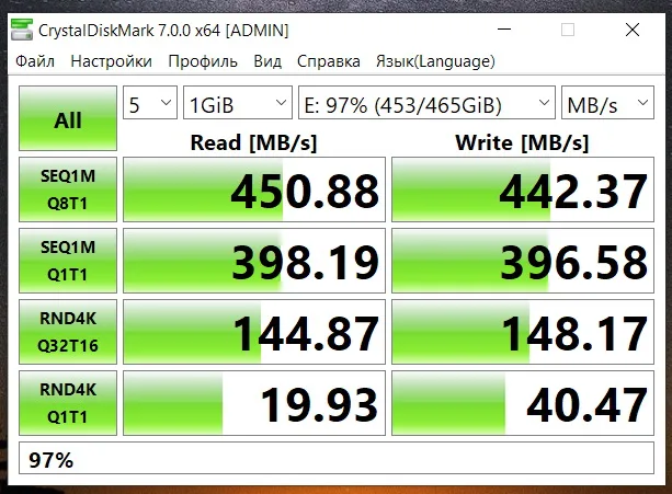 Классный диск. Давно пользуюсь продукцией данного производителя, от флешек, до M.2 PCIe4×4 накопителей. Мой контроллер usb 3.1 выдал максимум скорости. Обидно, что оказалось, мне не поставить контроллер на мою материнку для usb 3.2 gen2×2. Все кто ноют о низкой скорости, вы сначала проверьте, а ваш контроллер вообще выдаёт ожидаемую скорость? А ещё добавлю, что всё оборудование всегда требует настройки. Есть интересный факт, что у большинства людей оно не настроено на производительность. Вы хотябы для начала, выключите режим быстрого("горячего") отключения флешки, тогда уже от этого действия, скорость передачи данных может увеличиться втрое.