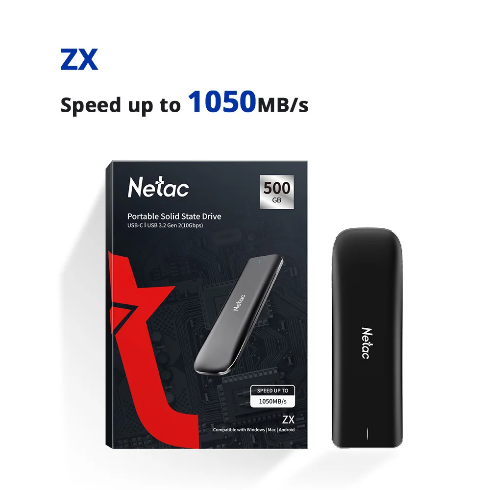 Внешний SSD-накопитель Netac, 1 ТБ, 2 ТБ, 500 Гб, 250 ГБ