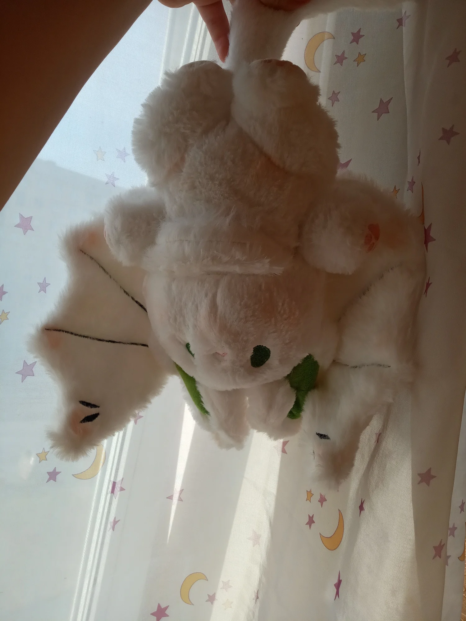 Это довольно мило для игрушки фабричного производства. Вышивка хорошо сделана (хотя цвета слишком насыщенные, а зеленый не соответствует зеленому цвету ушей), форма симпатичная, но у него есть некоторые дефекты шитья-одна из лапок была сшита слишком сильно и имеет карман. Я просто спрятал его, и он выглядит отлично. Материал мягкий, но я не могу понять, в какую сторону пойдет сон. Я также использовал щетку для бровей, чтобы аккуратно почистить мех и швы, чтобы освободить застрявшие волокна и сделать его красивее. Я не уверен, можно ли его стирать в машине, поэтому на данный момент я просто использовал несколько салфеток, чтобы продезинфицировать его. Я думаю, что немного больше начинки также было бы хорошо. В целом, это действительно удивительно для своей цены! Я не ожидал, что крылья и уши будут иметь стабилизатор в них, приятно удивлен