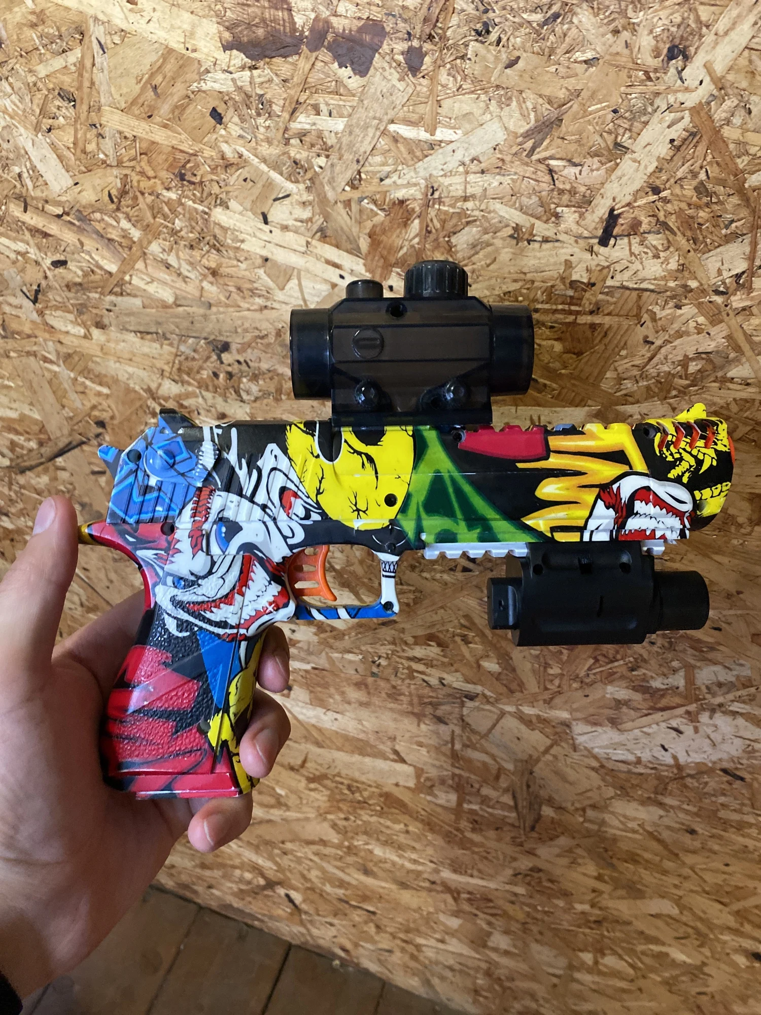 Я прибываю раньше, чем ожидалось. Очень хорошо упакован. Это здорово! Лазер тмб делает фонарик. Хороший вес, очень хорошо стреляет, быстро. И относительно сильный .. Идеально подходит для детей. I'm going to buy more.