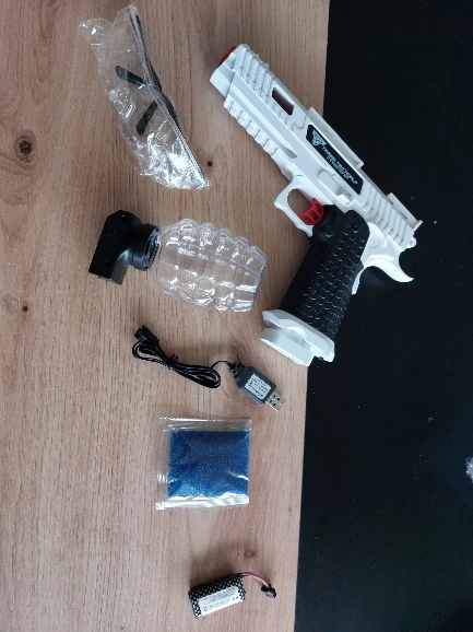 В целом не плохой автоматический пистолет, шел долго, почти полтора месяца. Дополнительно положили в баночку готовые пульки, но из-за долгой доставки они все рассыпались в руках.
