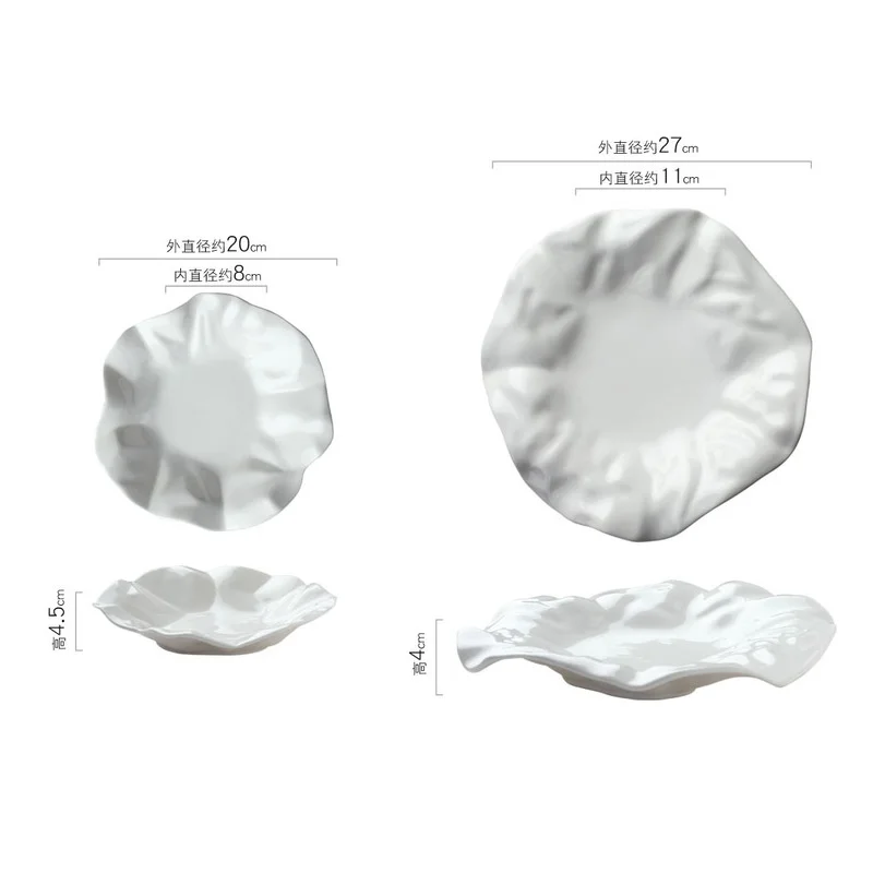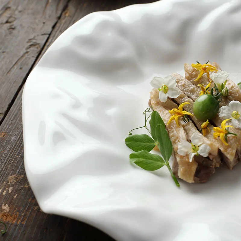 Керамическая тарелка в нестандартной волнистой форме, размер 8/10 дюймов, цвет белый