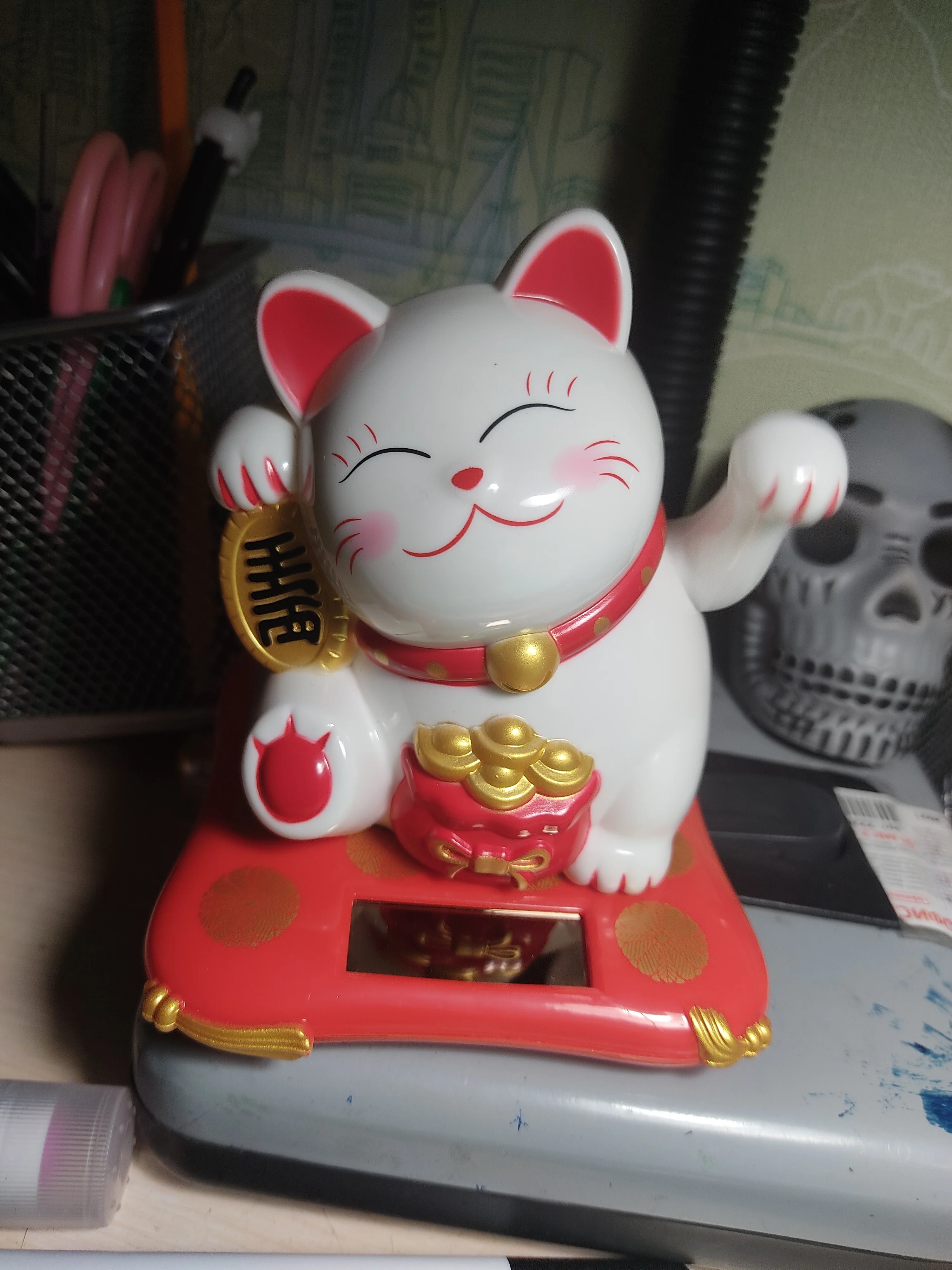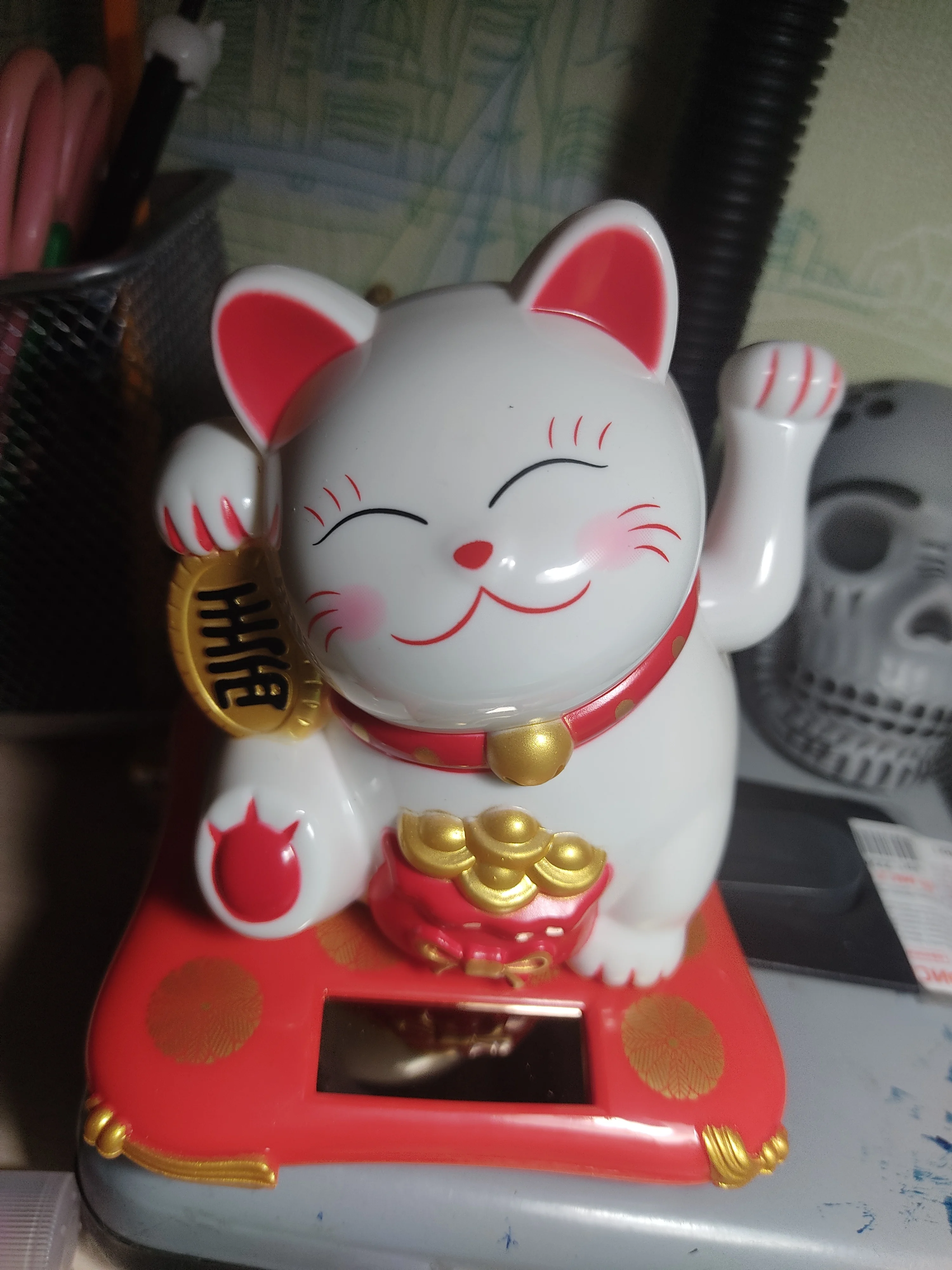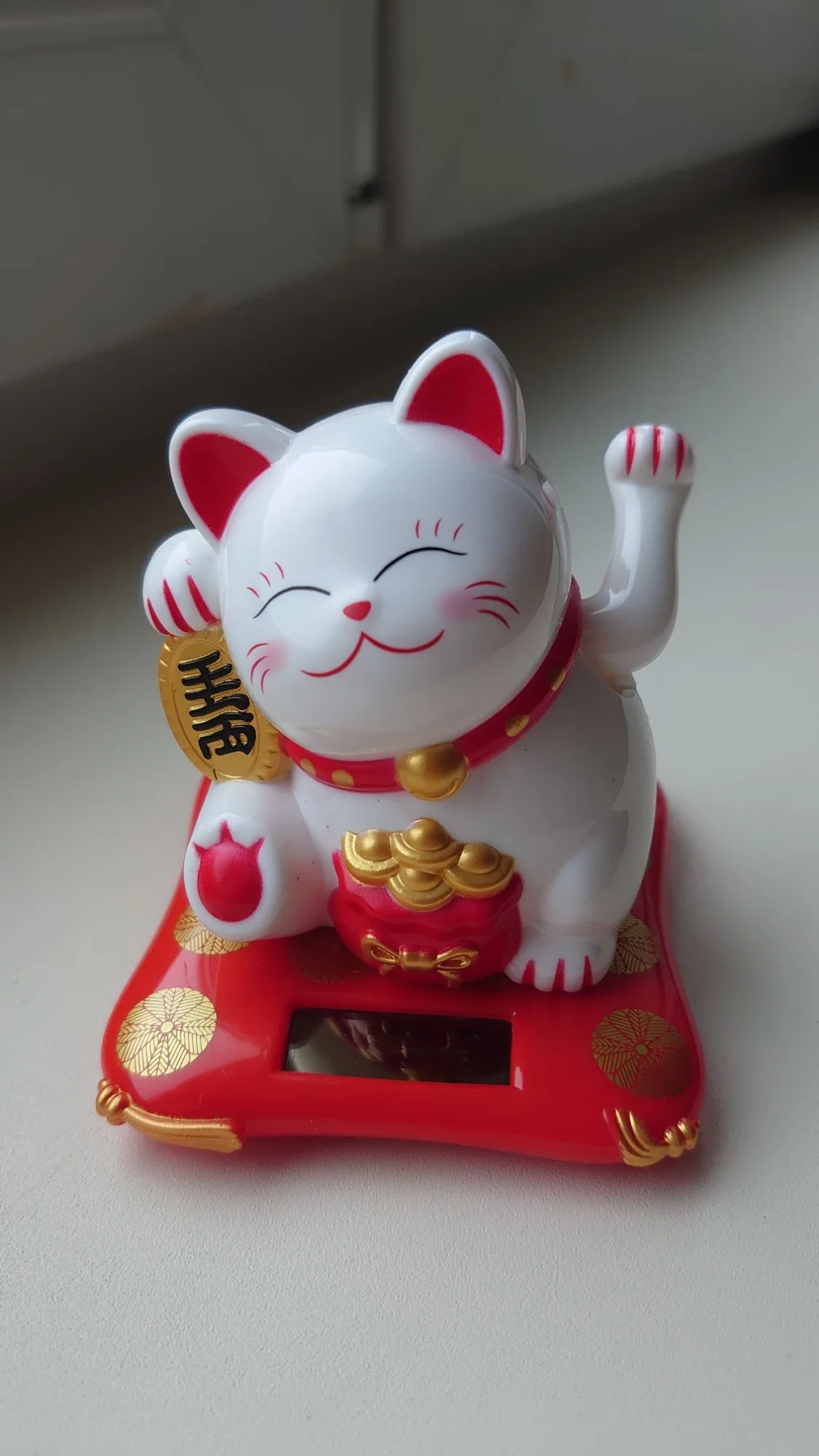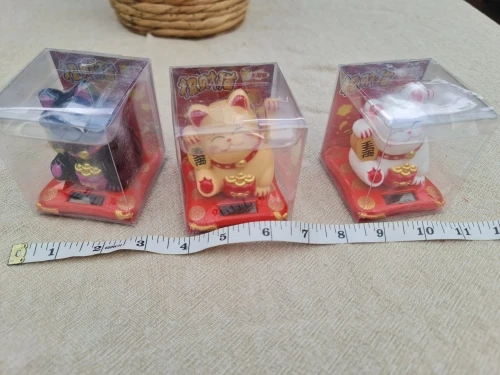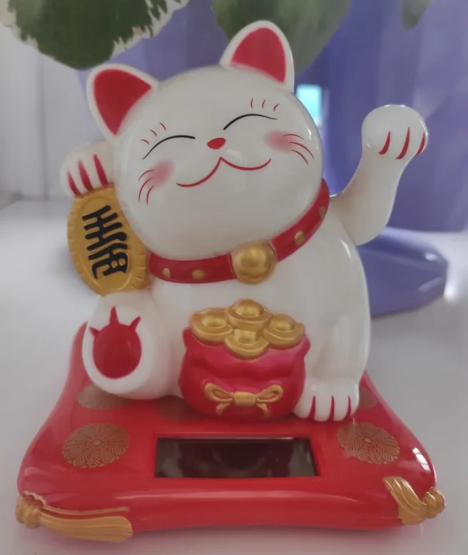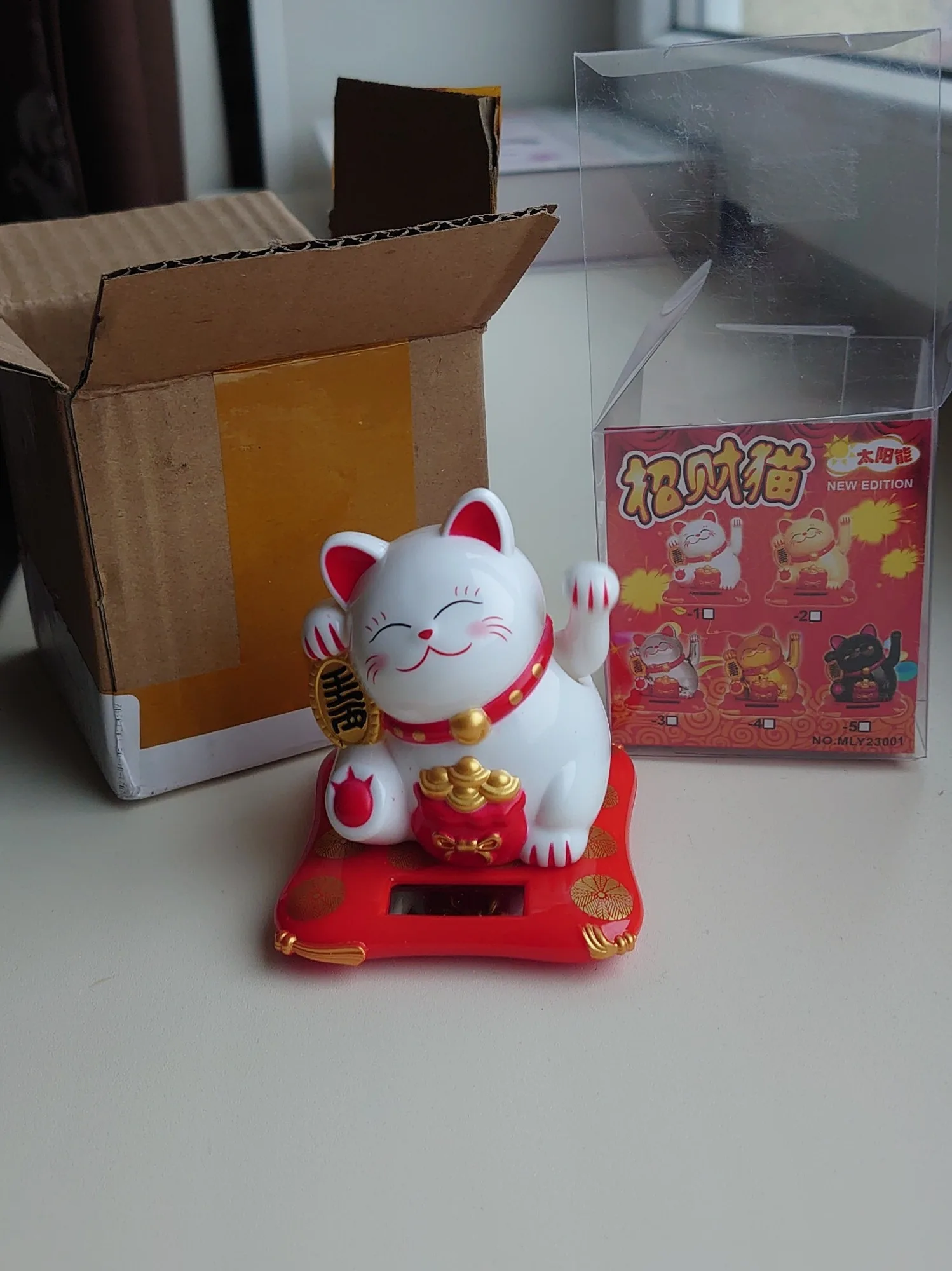 хороший кот, лапкой машет, солнечная батарея. упакован в пластиковую коробку + картонная коробка, доставлен в целости