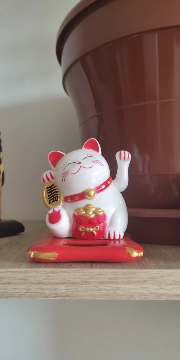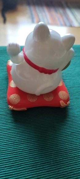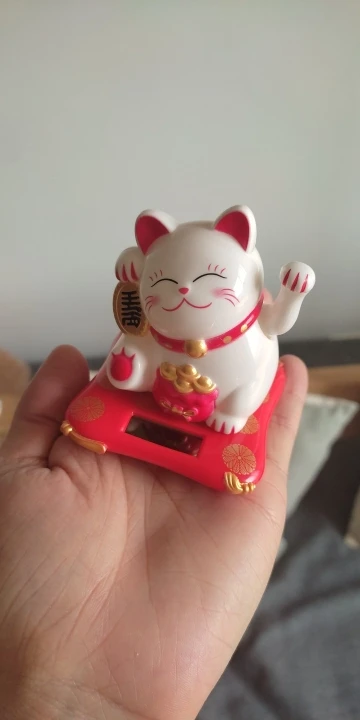 Благодарим за очаровательного котика! Лапкой машет без шумно. Работает от солнечной батарейки. Товар поступил в хорошем состоянии, замечаний нет .Ольга И. 14 января 2023