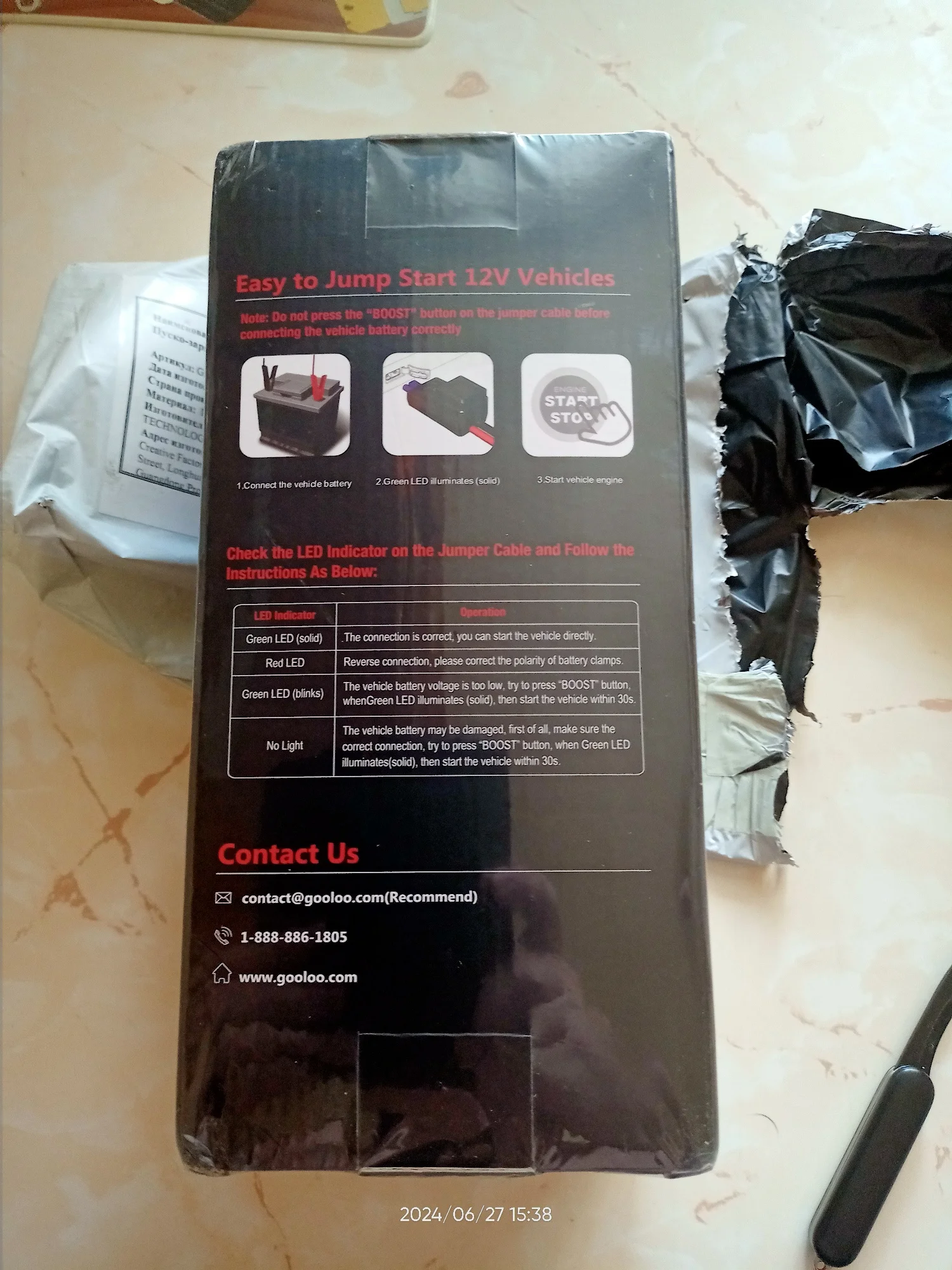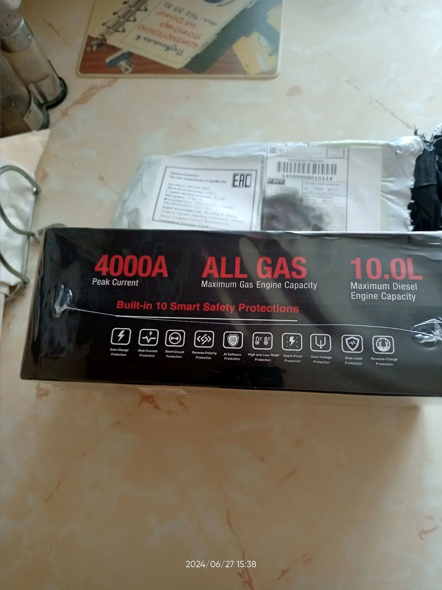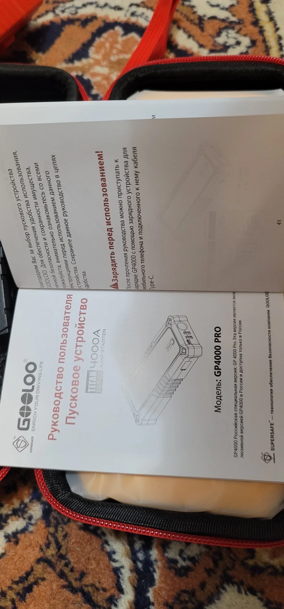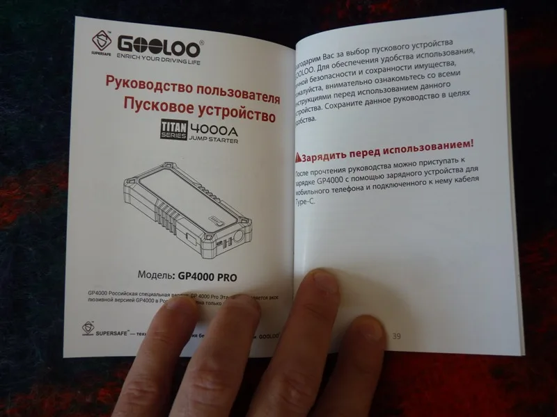 Хорошее пусковое устройство, приехало зараженным на 75% примерно. При первом включении в сеть за 3 часа дошло до 100%. К качеству претензий нет, клеммы сделаны надежно, провода толстые, удобный чехол в комплекте. Телефон заряжает, осталось проверить на авто. Инструкция на русском, как пользоваться понятно. Доставка со склада в России за 4 дня до Москвы.Alex S. 18 апреля 2024