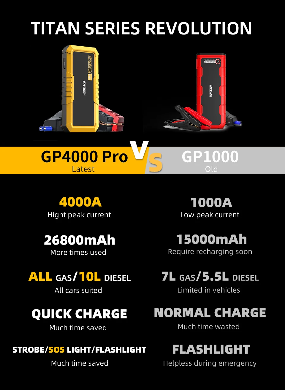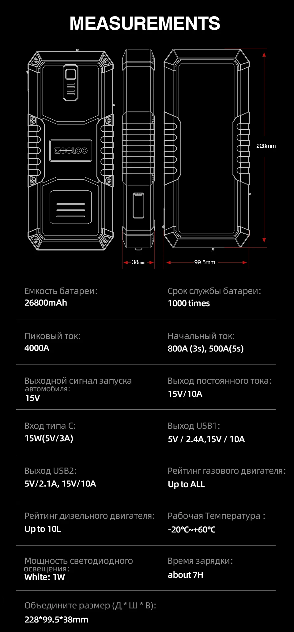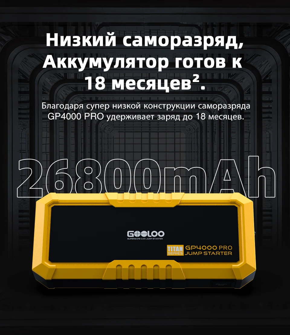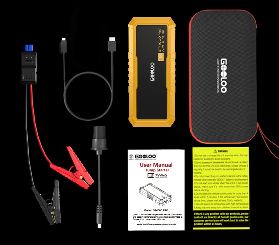 Пусковое устройство GOOLOO 4000A, пусковое устройство 26800 мАч, автомобильный бустер, внешняя батарея 12 В, пусковое устройство для бензинового дизельного аккумулятора