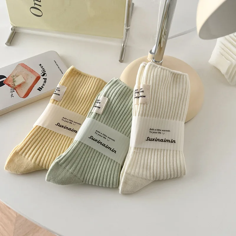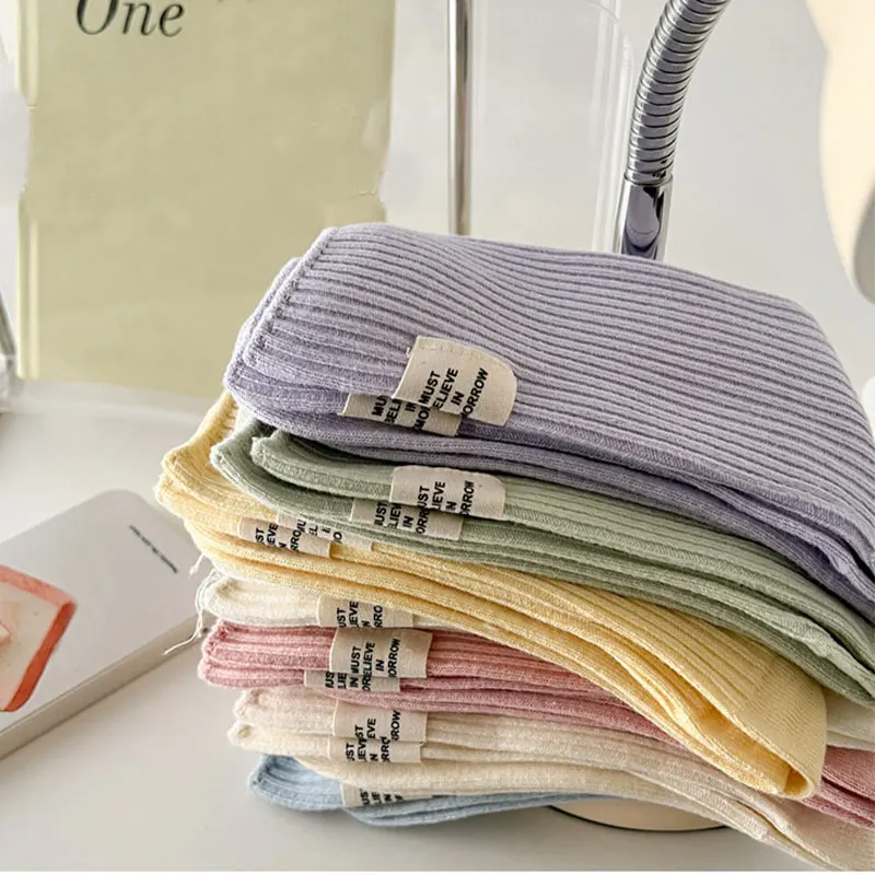 Женские носки весна-лето хлопковые носки с ворсом в японском творческом стиле ретро с тканевой этикеткой на каблуке модные удобные носки в Корейском стиле для девочек