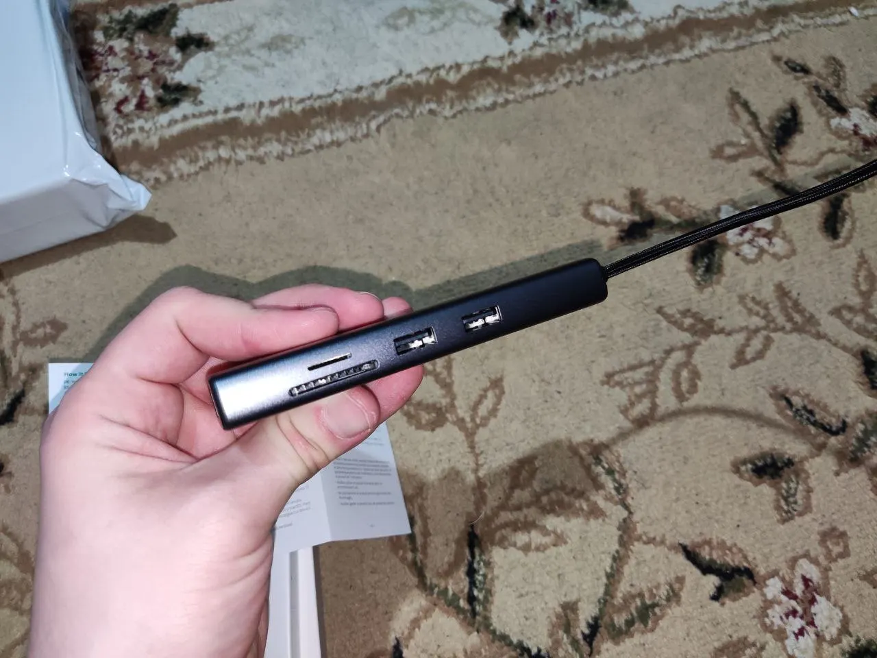 Отличный hub, все порты работают. При зарядке через type-c Honor Magicbook pro 16(65 ватт) корпус немного греется, но только во время быстрой зарядки, при питании от сети через hub корпус вообще не нагревается. Видел жалобы покупателей данной модели на кабель, а точнее на его жесткость, по первому впечатлению все хорошо, но будем посмотреть, если что, дополню отзыв. Благодаря распродаже 11.11 и купону цена вышла очень небольшой(1200₽), доставка заняла чуть больше месяца, отправили быстро. Продавца могу смело рекомендовать.