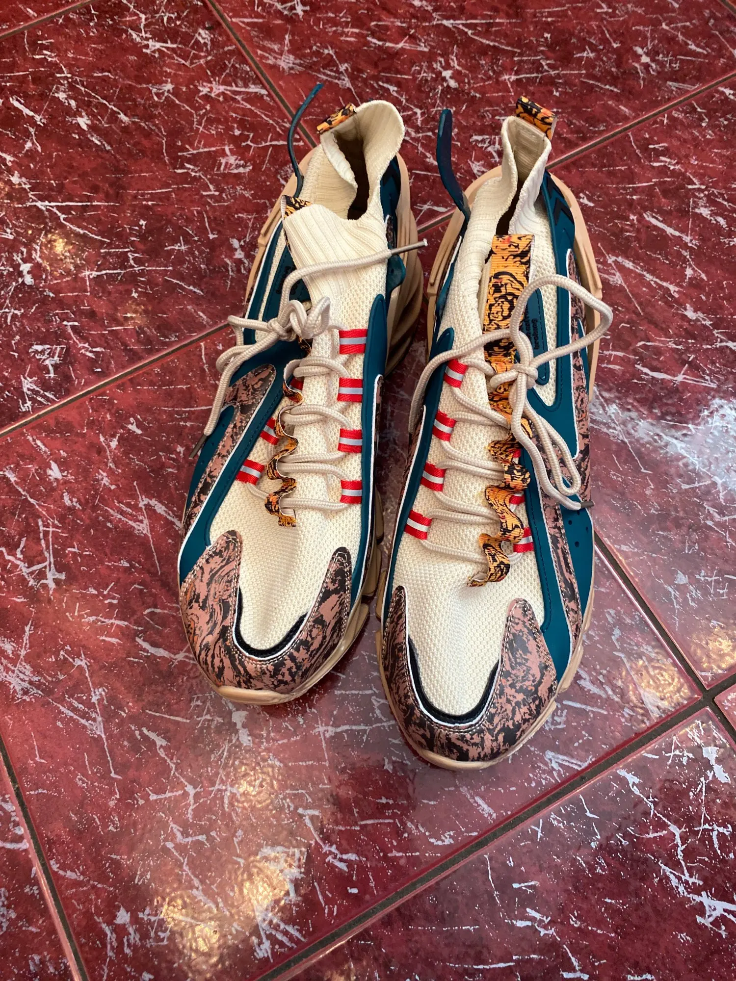 Кросы пришли быстро, за 10 дней, в Питер. Очень тяжелые за счет подошвы, т.к. весь верх тонкий и мягкий. Подошва супер и довольно-таки жесткая не смотря на видимую легкость. По таблице выбрала 43р., но они оказались чуть великоваты и свободны в объеме. Сын доволен, сказал, что они супер крутые. И это правда, таких ни у кого не видела. Продавца рекомендую! Посылка отслеживалась постоянно. Товар -