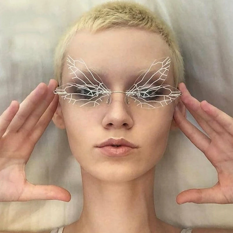 Солнцезащитные очки-бабочки без оправы, солнцезащитные очки с стрекозой и крыльями, Женские винтажные очки с прозрачными океанскими линзами, мужские розовые солнцезащитные очки с защитой UV400