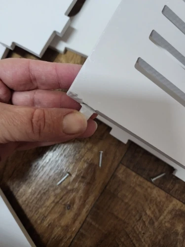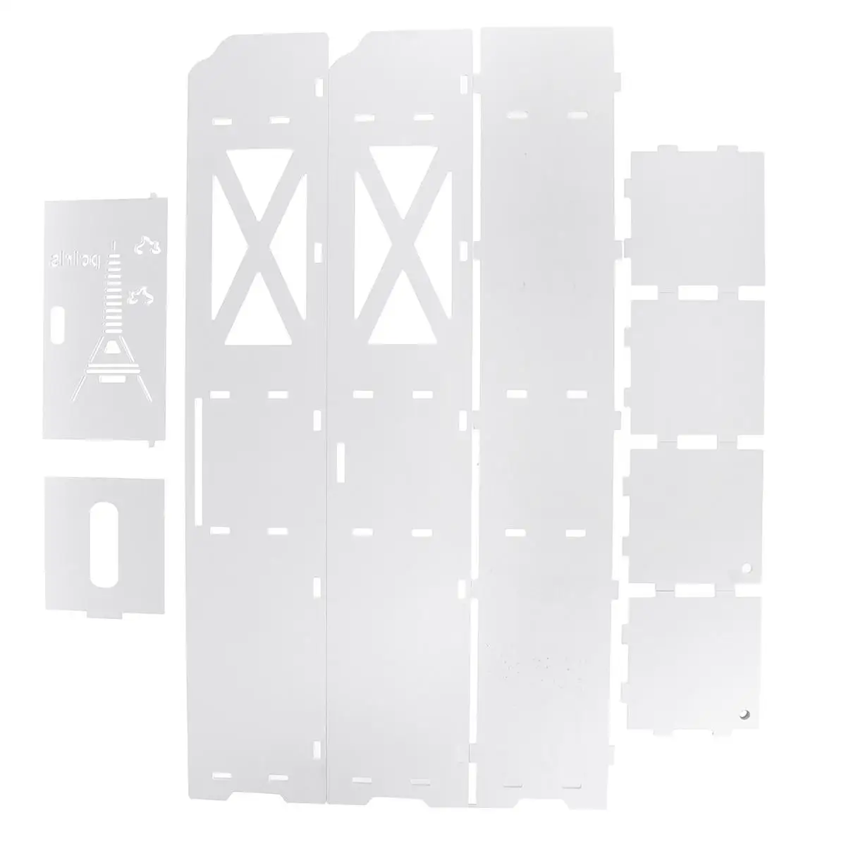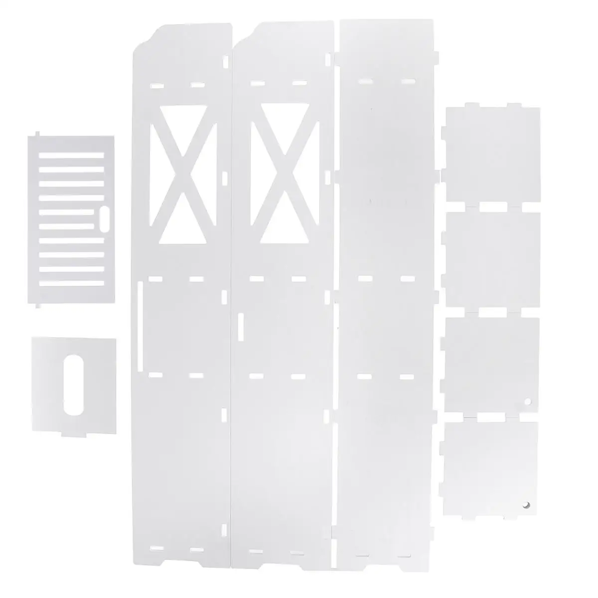 Материал второсортный пластик, крошится в руках как пенопласт. До конца собрать не удалось, средняя дверь не подошла по размеру. Одна панель была повреждена при перевозке, возможно на посылку поставили что-то тяжёлое при транспортировке. Функцию свою всё же выполняет.