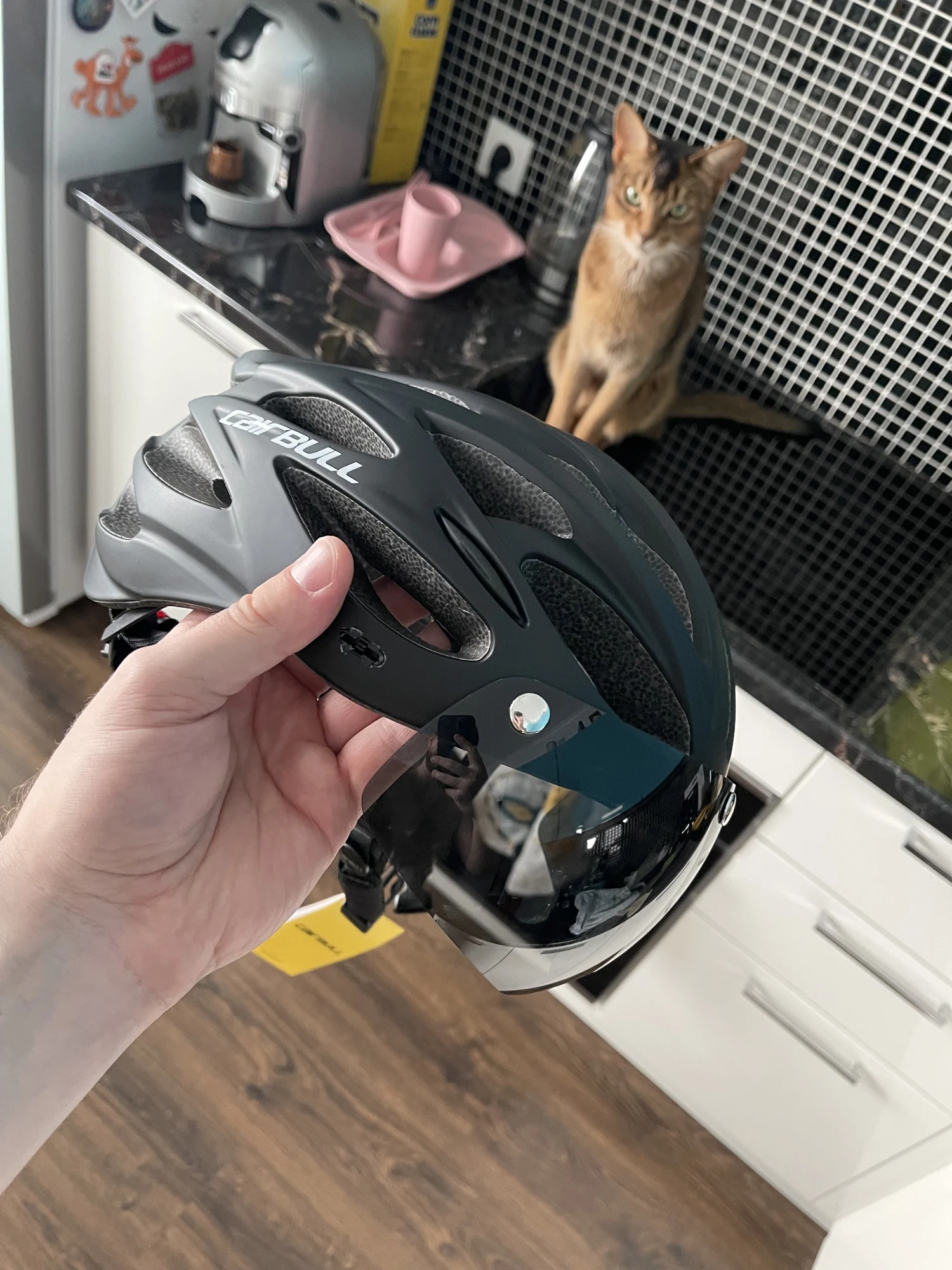 Шлем заказал 21.02 пришел 13.03. Упакован очень хорошо, ничего не повредилось???????? Касательно самого шлема: очень легкий, пластик крепкий (ударился головой о стену-все ок ????????????), смотрится стильно и круто. Внутри шлема подкладка снимается, она на липучках, а значит можно постирать и надеть снова. Сам шлем регулируется с помощью заднего фонаря, покрутили и он будто обнял вашу голову????. В комплекте шел визор, сделан из пластика, но оооочень хорошего качества, крепится на магнитах(думаю не слетит во время поездки, так как магниты добротные). Затемнение хорошее, глаз не видно, зато ты видишь абсолютно все. Так же был козырек, но он обычный, поэтому много писать не буду. Вывод: рекомендую продавца и сам товар????????????