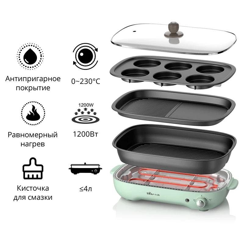 мультиварка BEAR DHG-C40D5 многофункциональный кастрюля 3 в 1 c 4L емкость 1200 Вт с антипригарным покрытием бытовая техника