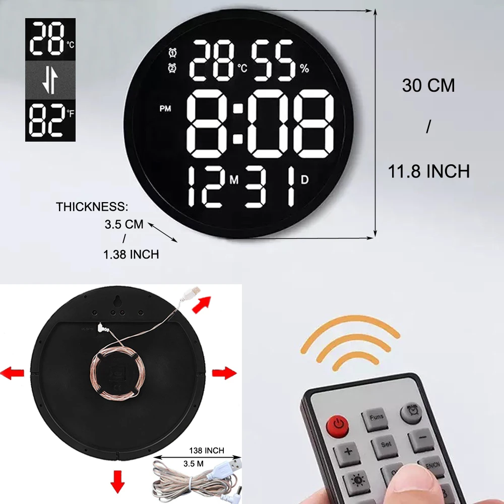 Настенные цифровые часы с календарем