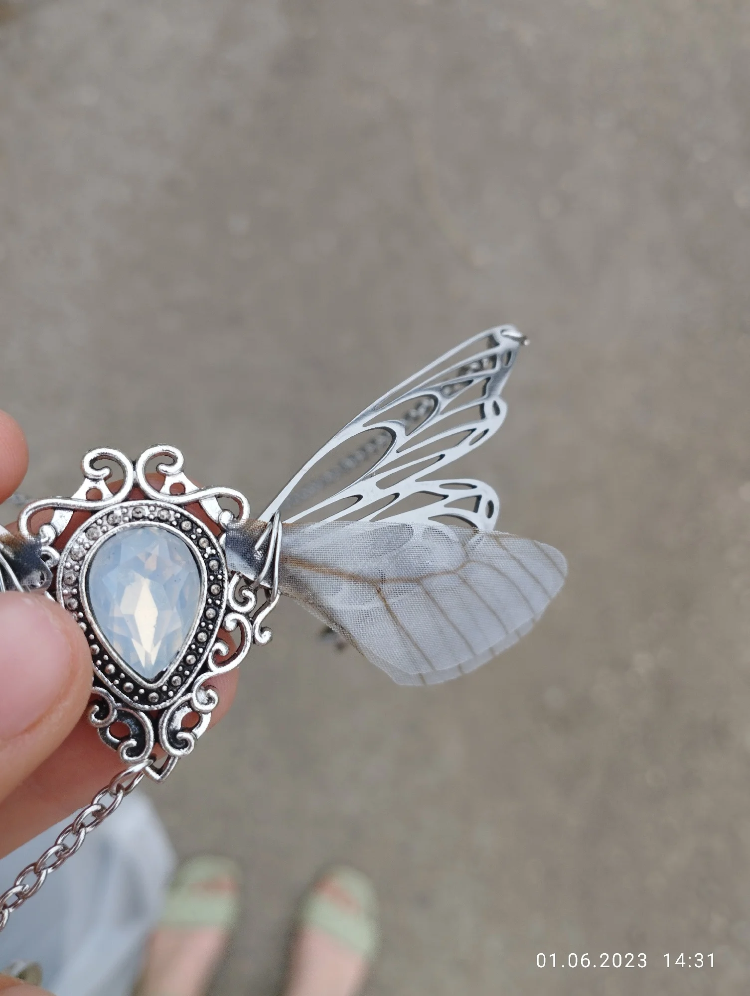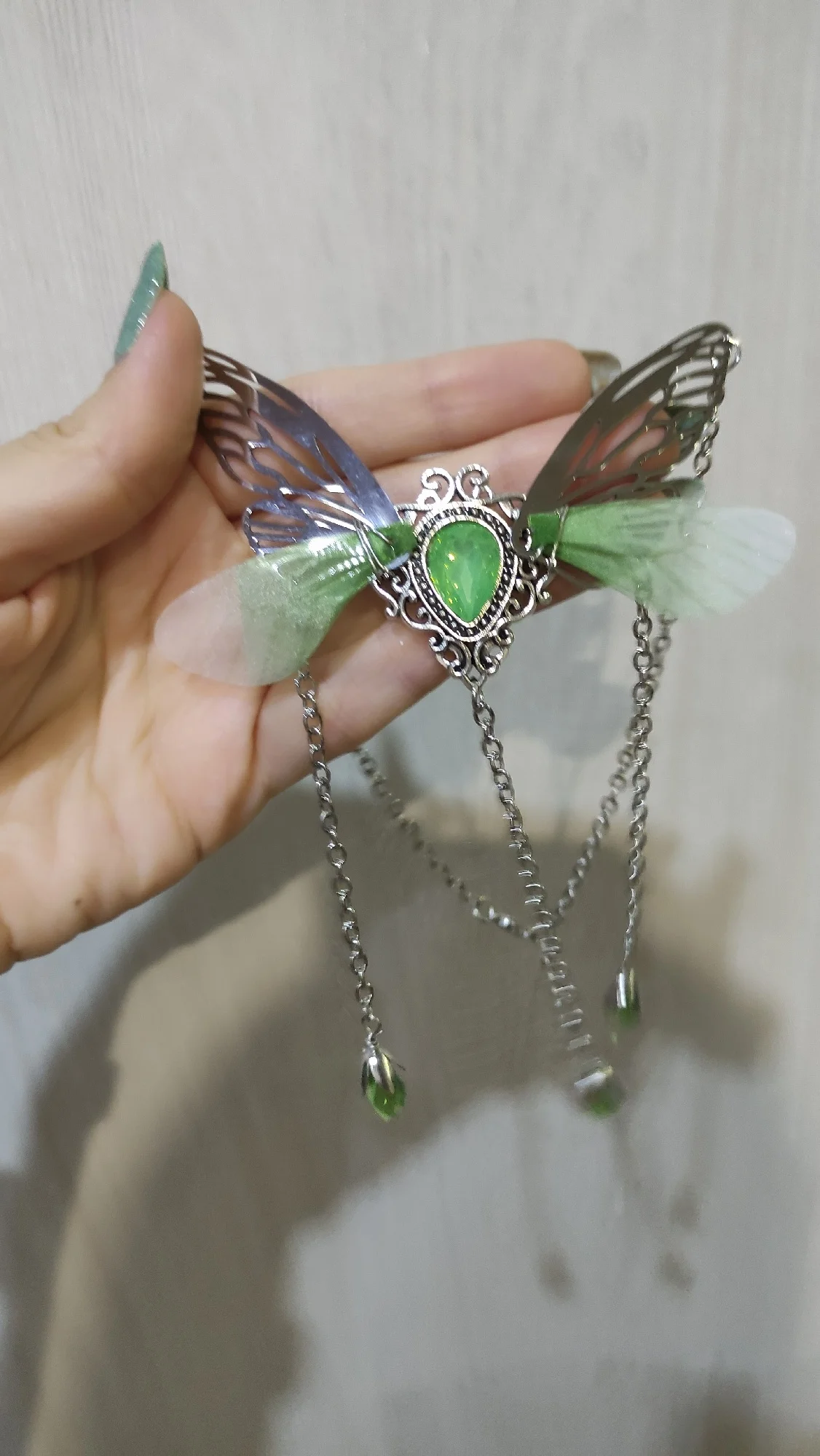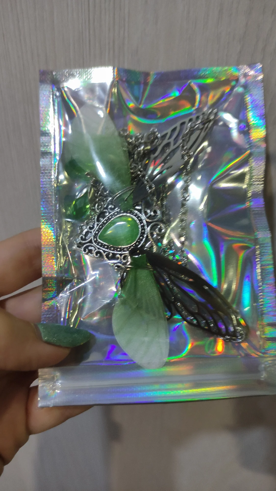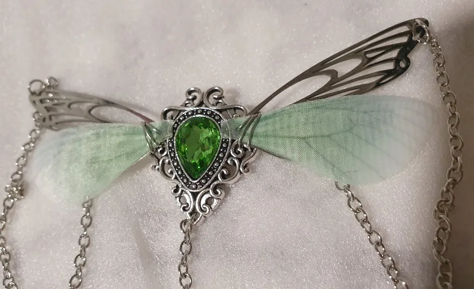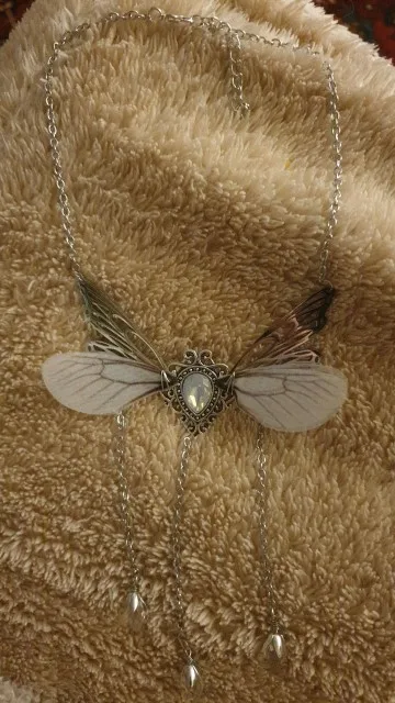 Очень красивое ожерелье. Одно из текстильных крыльев немного согнуто, поэтому мне придется немного его исправить. В противном случае это красивый продукт. Спасибо продавцу!