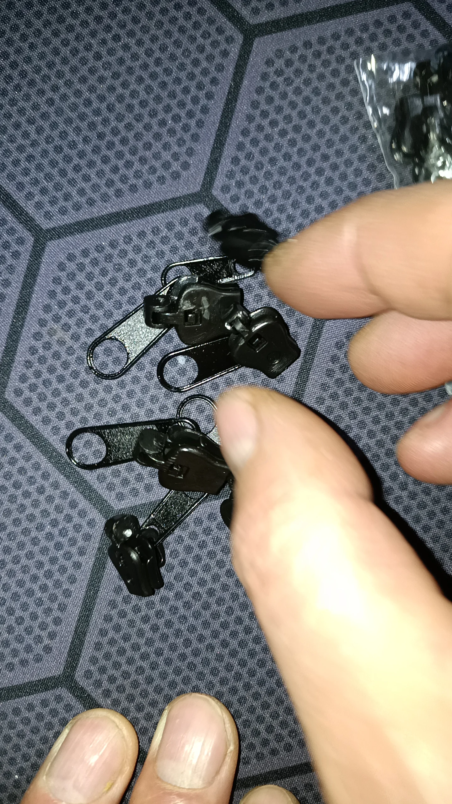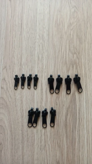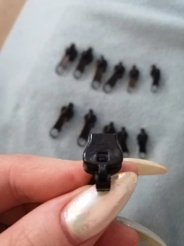 Товар сделан из пластика. В пакетике 3, как я понял, разных размера. Починил куртку, где после покупки быстро сломалась молния. Я был очень доволен и стал ремонтировать 2-ю свою куртку. И тут обнаружились минусы - плохое крепление скобы за которую тянешь и слобоватая защёлка при закрывании. Пришлось брать термоклей и паяльный фен и усиливать слабые места. Тогда на 2-й куртке заработало. Ремонт 1-й куртки полностью окупил эту покупку. Поэтому в целом доволен, но 5 звёзд поставит не могу. Требуется чуть улучшить данный товар...