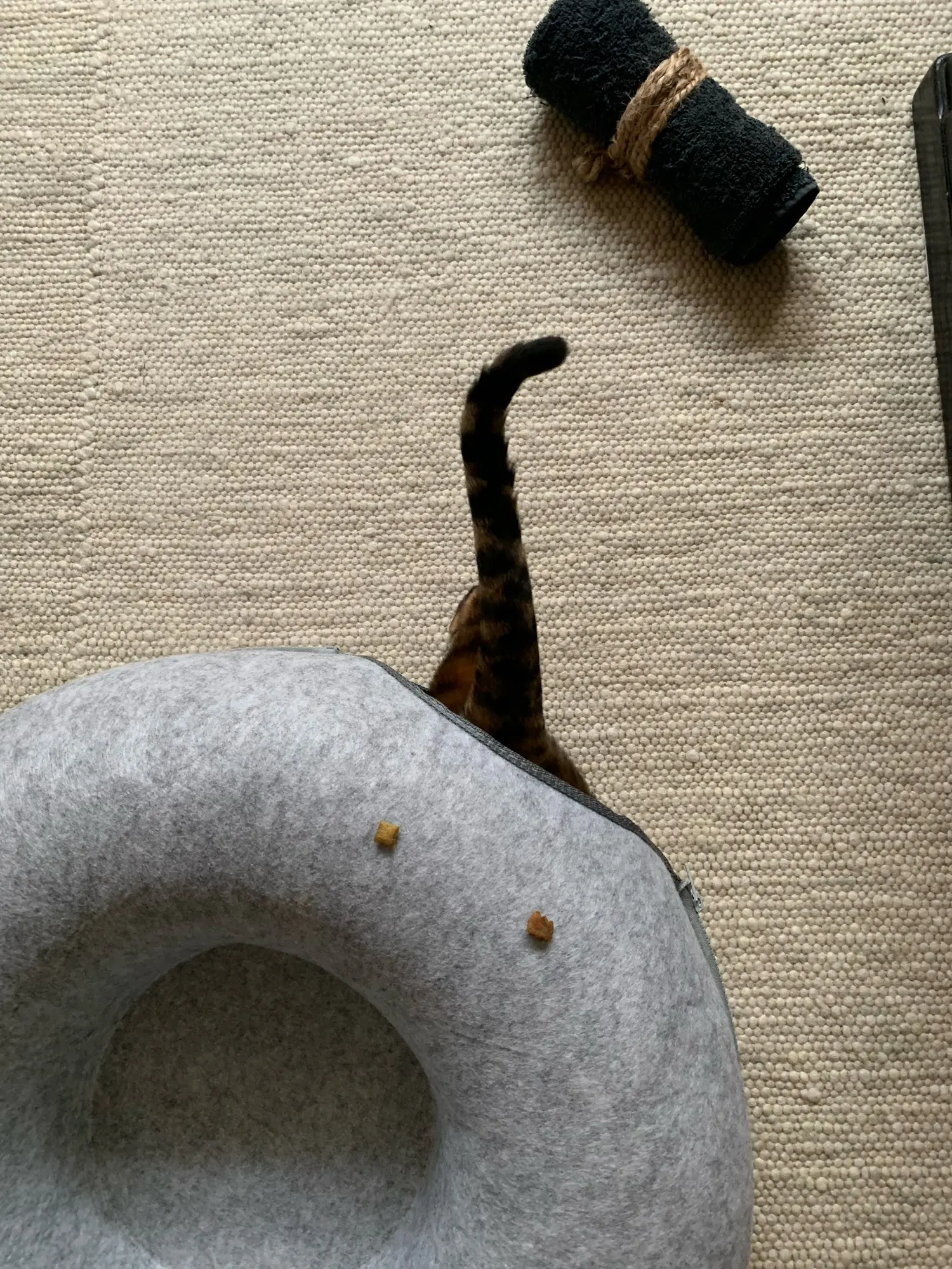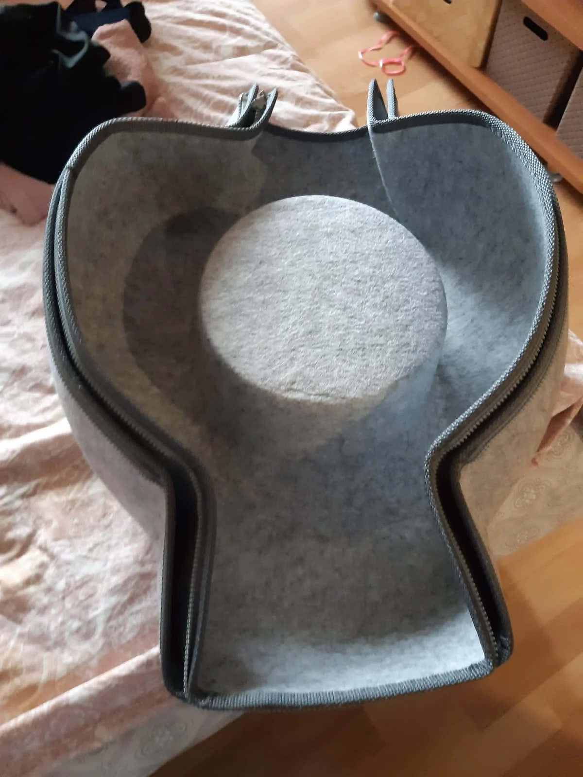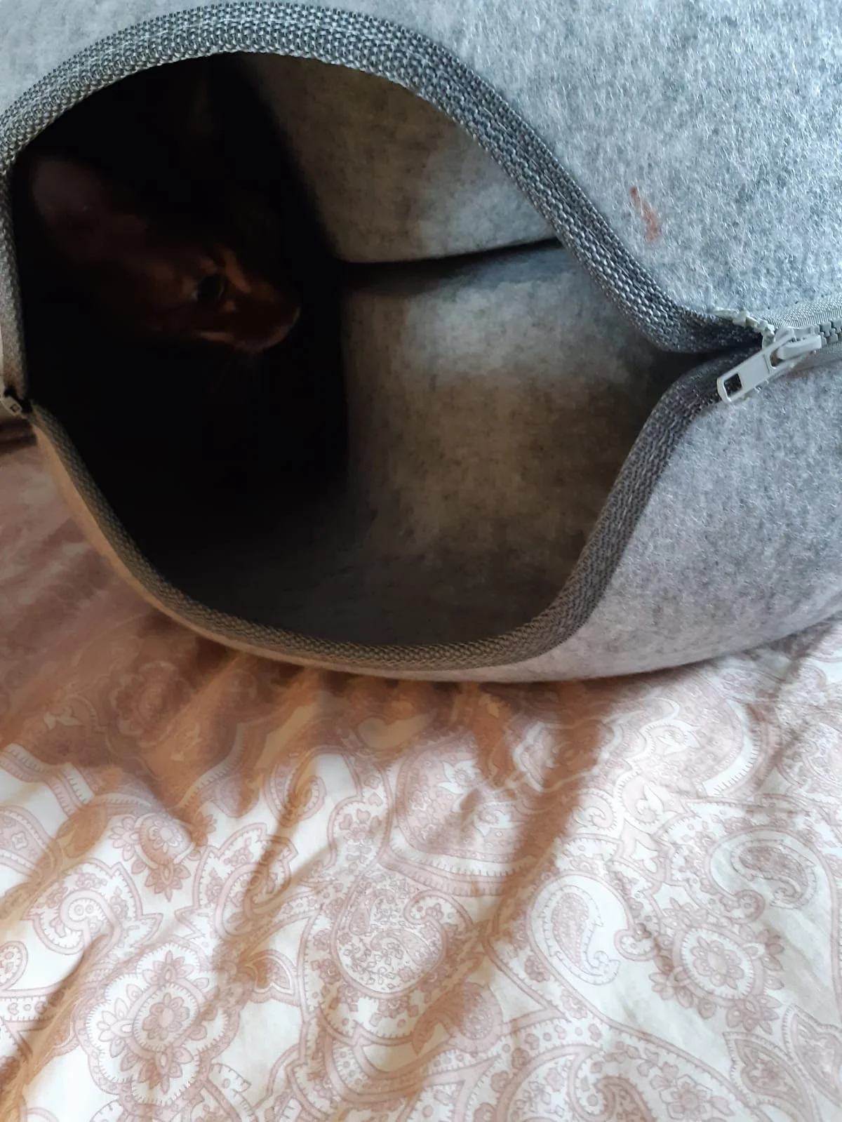 Вещь супер. Очень хорошее качество, все швы прочные. Молния не застревает. Кот счастлив. Он не вылазит из бублика. Закинула ему шарик, часами его гоняет по кругу. Уединяется, прячется, спит в нем. Маломерки. У меня бенгальский кот, 6 кг. Заказала самый большой размер. Остальные были бы тесными. Пришел в смытом состоянии, но выпрямился очень быстро. Очень плотный. Держит форму. Сама на нем лежу. Рекомендую всем. Спасибо большое продавцу за такую игрушку