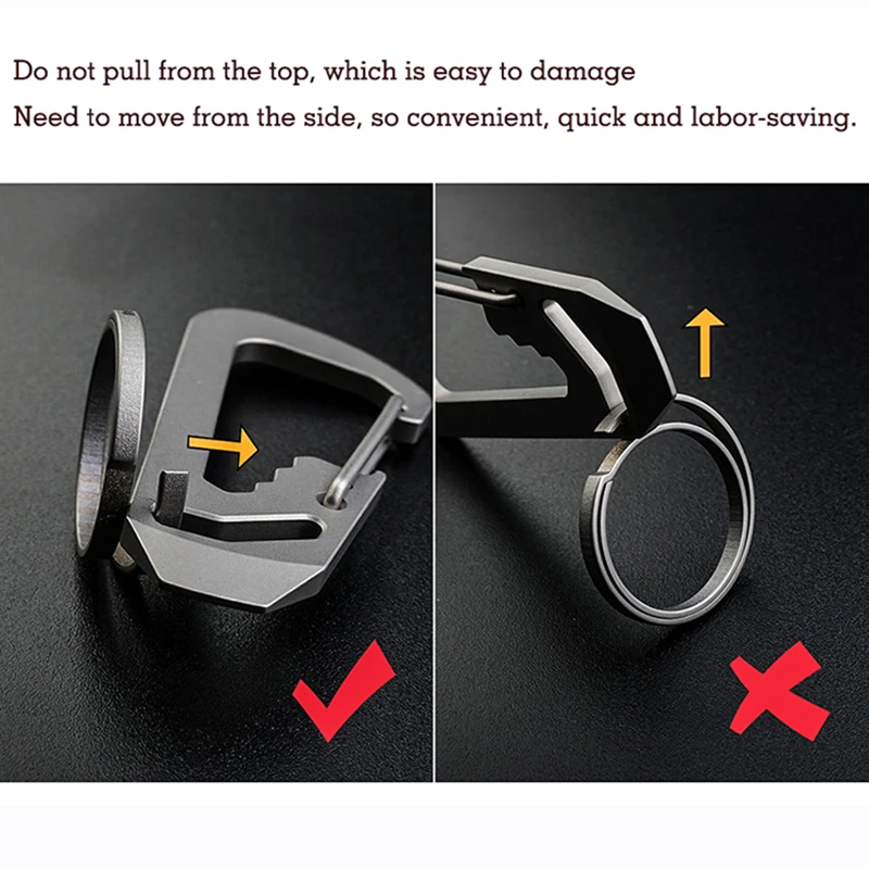 Внешний вид изделия-металлический титан, внутри-настоящий Титан. Поскольку Титан трудно отливать, поэтому его нельзя сделать похожим на форму обычного кольца для ключей, но процесс + дизайн этого продукта умело продолжает использование кольца для ключей, чтобы сохранить красоту кольца для ключей, украсить чувство дизайна и супер прочный, Станет интересным и эффективным помощником в вашей жизни.