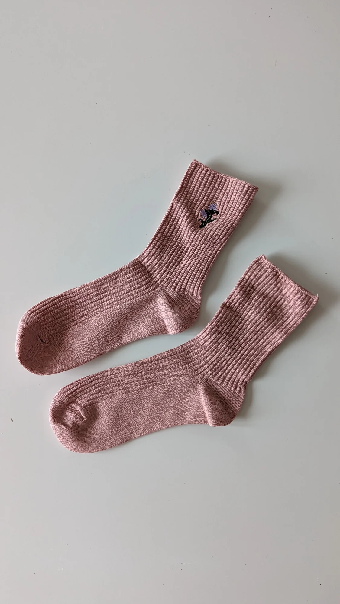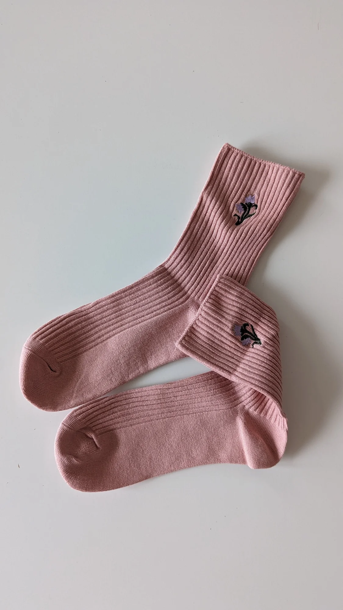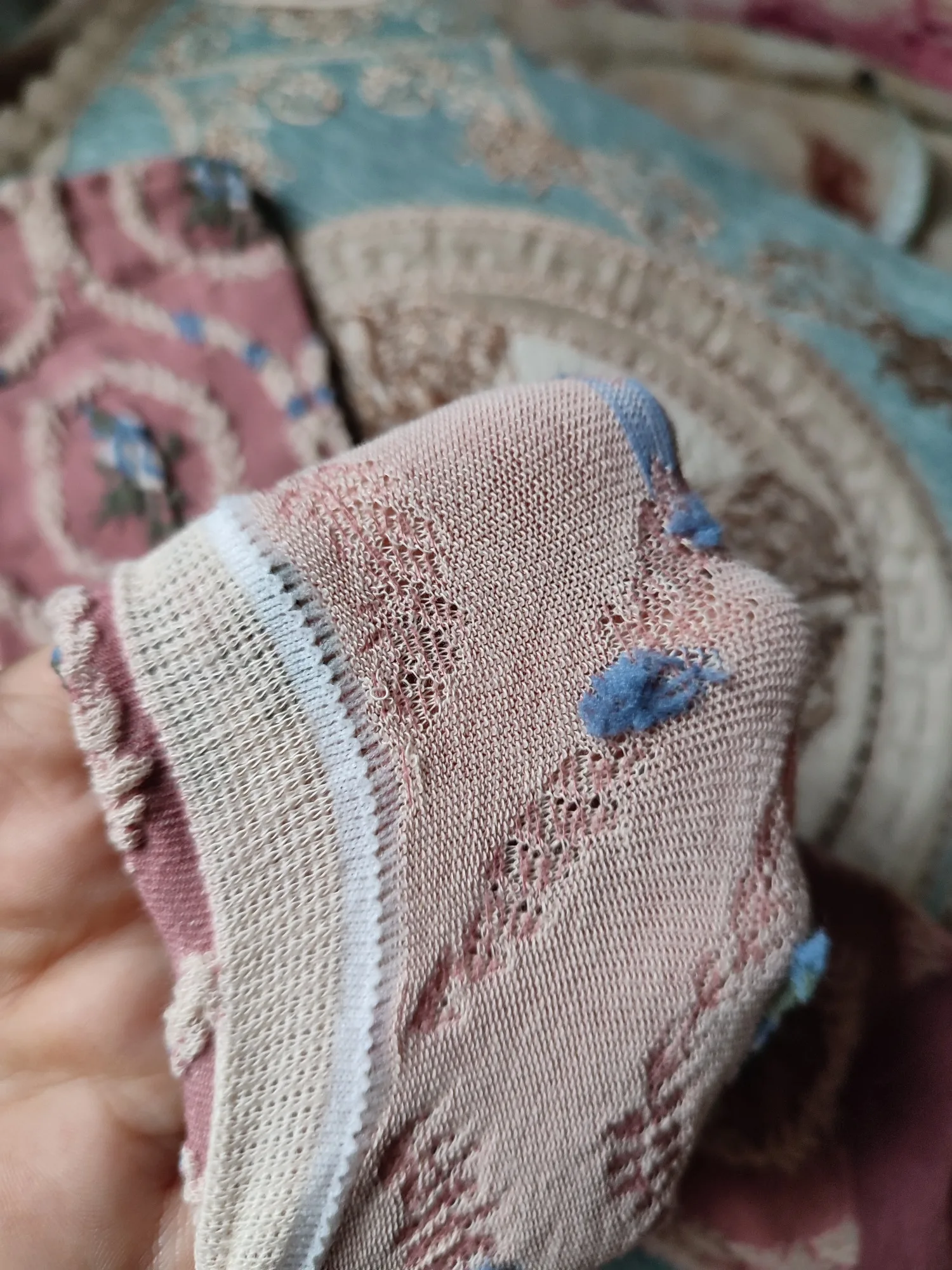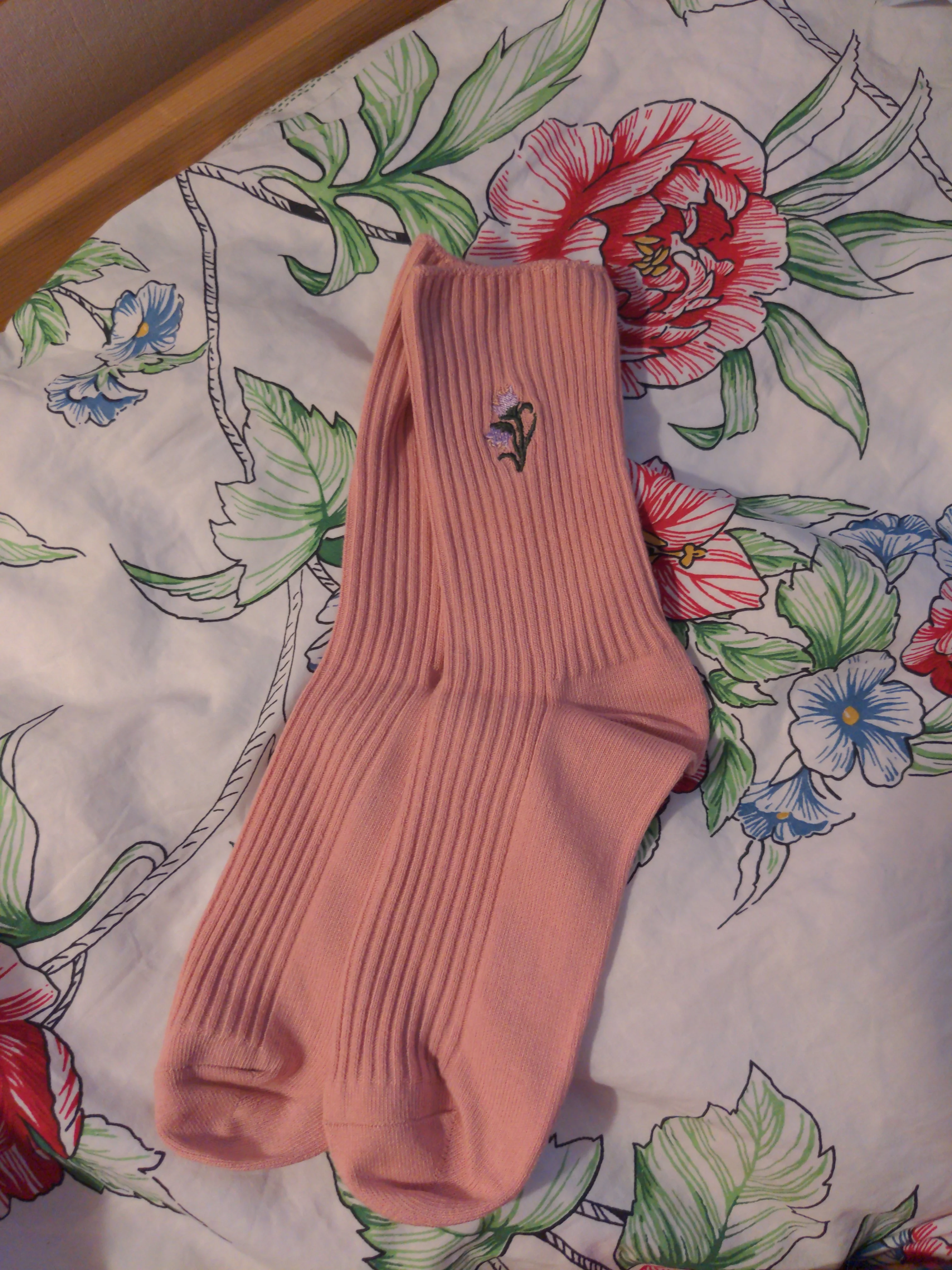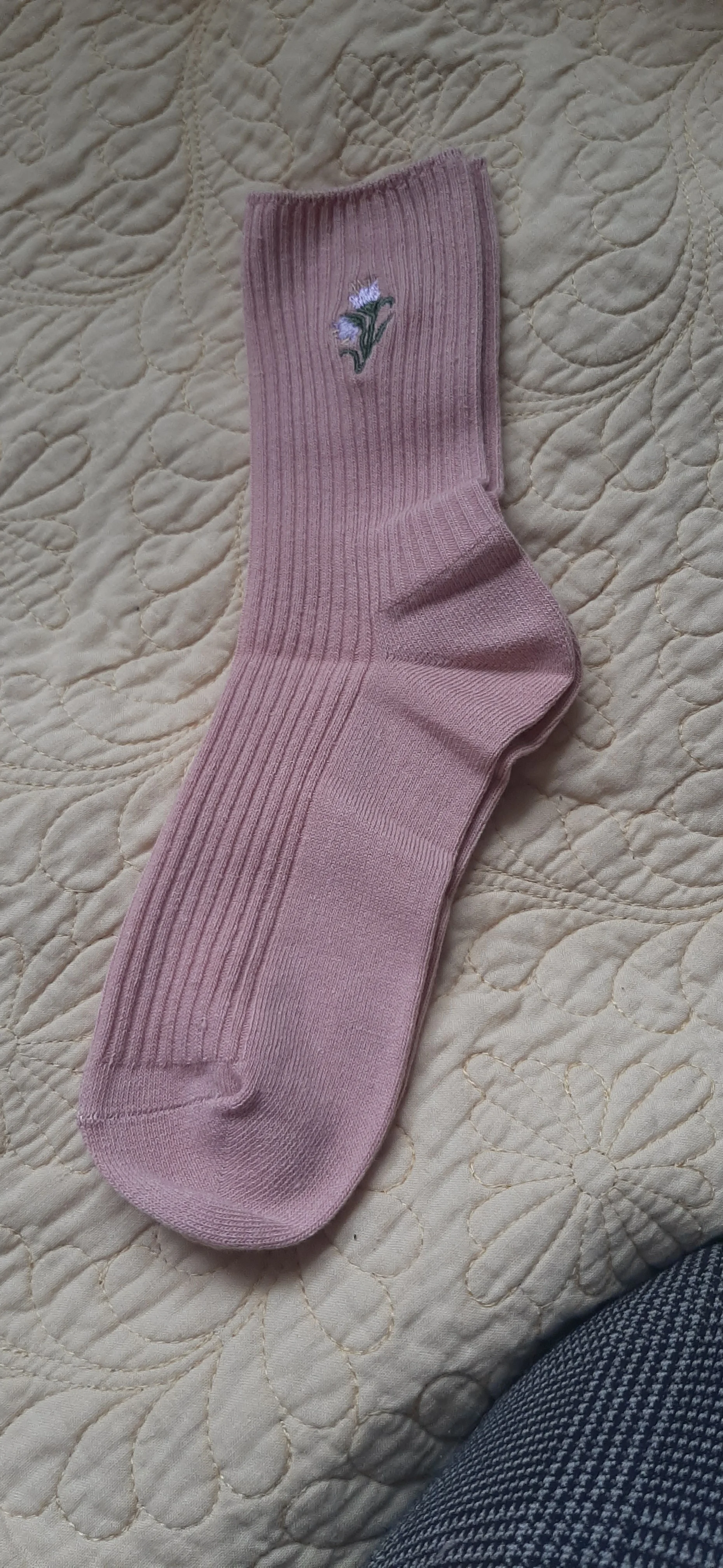 Замечательные носки! Из хорошей ткани с хлопком приятного пудрового цвета, вышивка хорошего качества. Резинка не давит. Доставка до Москвы заняла 3 недели.