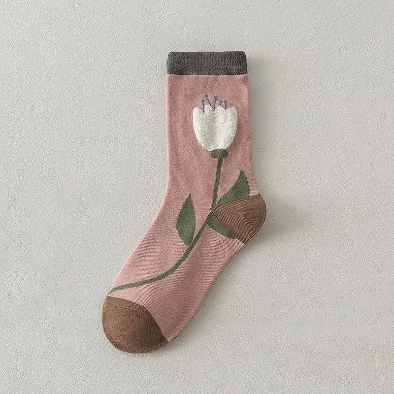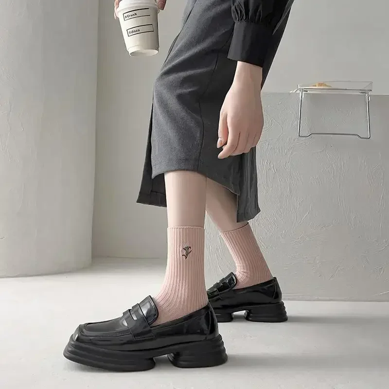 Розовые носки с цветочной вышивкой в стиле Харадзюку, винтажные женские носки в стиле ретро, милые японские длинные носки в стиле колледжа для девочек старшей школы