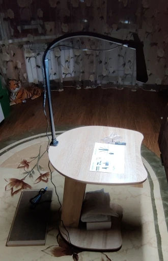 Лампа на 10Вт,а не как указано в описании на 24Вт. В целом хорошая, яркая дзержинского, но: 1. Провод идёт сверху штатива и его нужно куда-то прятать; 2.Крепление лампы к штативу ненадёжное, лаппа устанавливается не ровно; 3. Штатив очень высокий и лампу нельзя опустить вниз. Упаковка выдержала, но превратилась в труху.