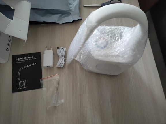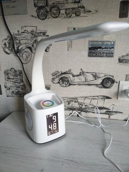 Изначально думал, что качество будет не совсем хорошим. Однако, дампе превзошла все ожидания: пластик на ощупь очень приятный; гнущаяся часть лампы прорезинена и так же приятна на ощупь; 3 режима (тусклый, средний и яркий свет); разноцветная подсветка довольно красиво смотрится; отсек для принадлежностей довольно вместительный. Панель с часами/датой/будильником легко настраивается. Вся информация по настройке есть в инструкции по эксплуатации. Лампа пришла целой и невредимой, была в коробке и запакована в пузырчатую пленку. В комплекте было: адаптер питания с разъемом под USB, кабель питания, лампа и инструкция по эксплуатации. Заказал лампу 17.10.2021, доставили в Минск 27.07.2021. Продавцу огромное спасибо! К покупке рекомендую!