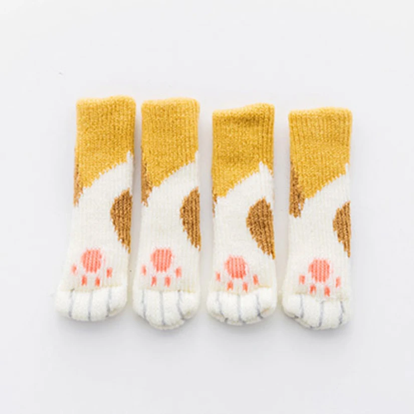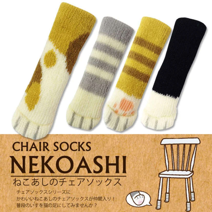 4 шт., креативные носочки для ног с кошачьими ножками, противоскользящие вязаные толстые столики, покрытие для ног, дверные ручки, защита пола, домашний декор