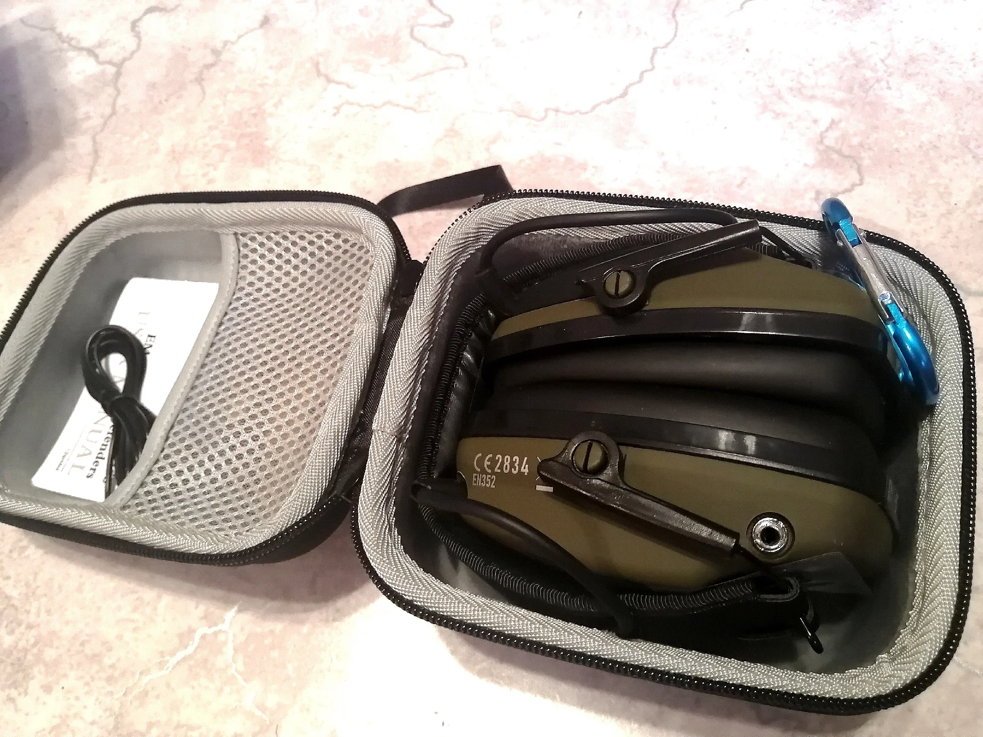 Наушники хорошего качества. Качественный чехол, инструкция (русского языка нет). в подарок от продавца - карабин. Мелочь, но приятно. Питание от 2х батареек ААА (нет в комплекте). При включении есть фон, но не критичный. Дополню отзыв после использования в тире. Расстроила доставка. При заказе была дата доставки 28.07, по факту приехали 01.08