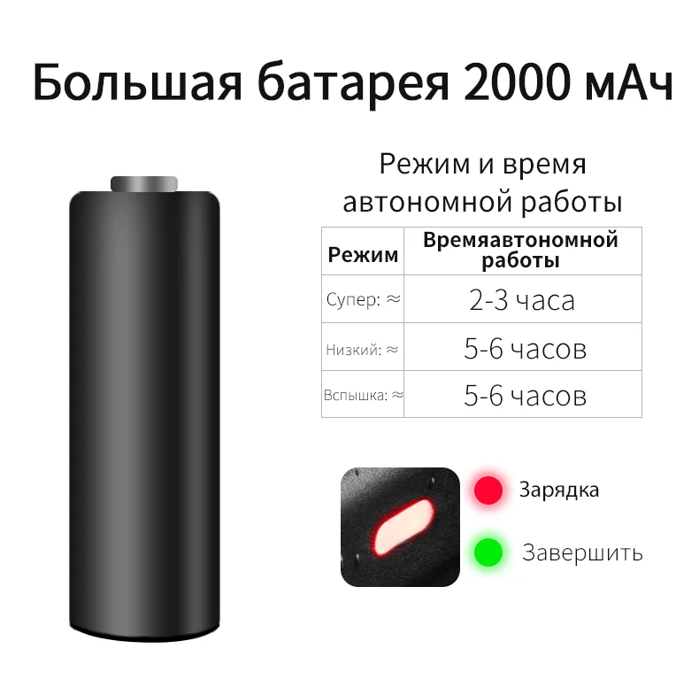 Встроенный аккумулятор, зарядка через USB, большая емкость аккумулятора
