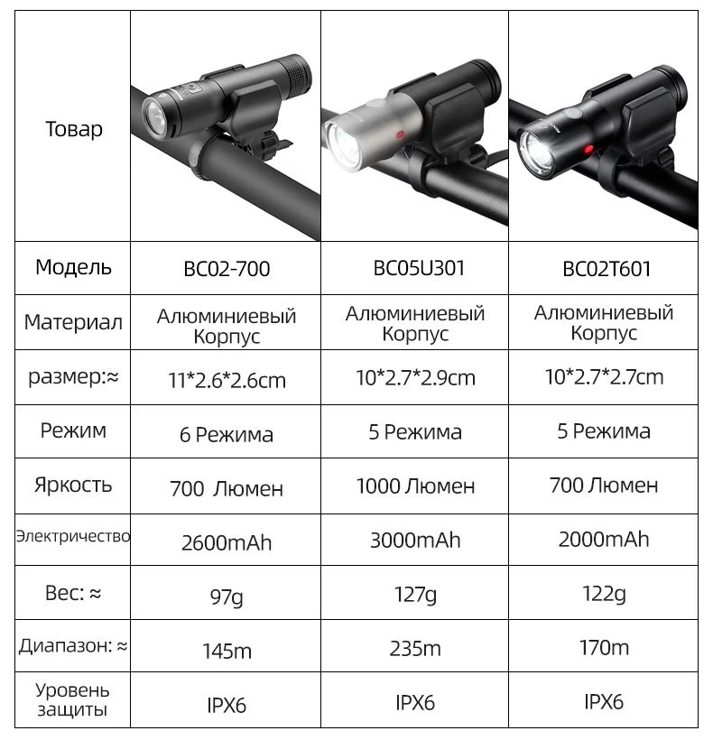 IPX4-IPX6 из водонепроницаемого материала. Не следует погружать его велосипедного фонаря в воду.