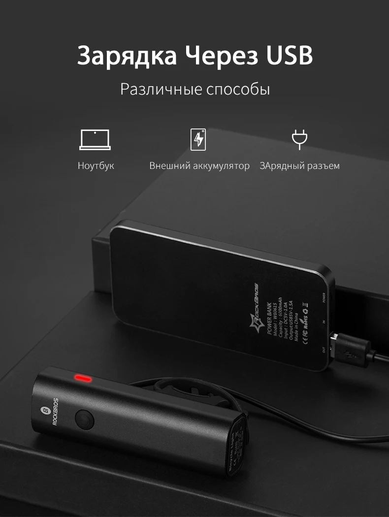 ROCKBROS велосипедная фара непромокаемая USB зарядка MTB велосипедная передняя...
