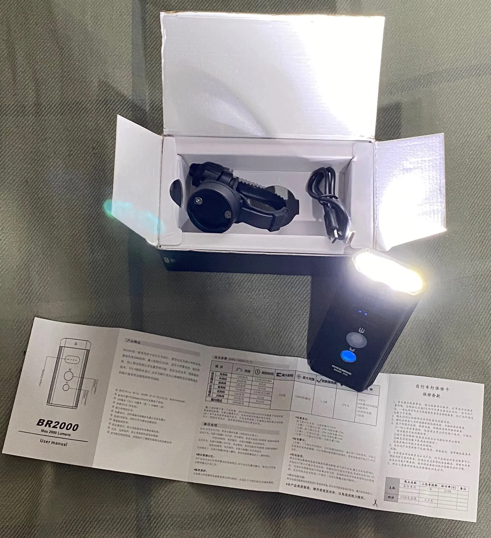 Пришел на день позже указанной даты и почтой, за что извинились, так как логистика нарушена в связи с мировым пинком России, ну да ладно... Фонарь в фирмовой коробке, с кабелем зарядки и инструкцией, заряжен светит достойно. из минусов, чисто моя приходька, крепеж пришлось перевернуть т.к. фонарь слишком смещен вперед и на лесной дороге из-за тряски клюëт вниз, а сильней затянуть ремешок на моем руле невозможно. к слову, модель не подразумевает разворот крепежа на 180° поэтому пришлось подбирать другой винт крепежа и слегка поработать надфилем, мне это не влом и не доставило неудобства. Вышло как хотел и визуально как с завода. Жаль что ROCKBROS убрал модель которая была у меня до этого, там пучек света был прямоугольный и не слепил встречку, тут же пучек круглый и свет соответственно распространяется во все стороны. В целом доволен, рекомендую, фирма зарекомендовала себя достойно!