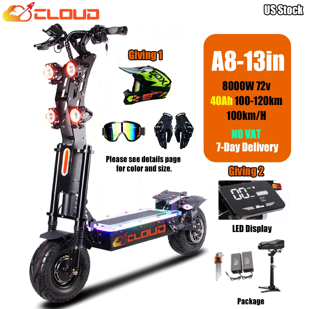 Двухмоторные электрические скутеры CLOUD A8, 13 дюймов, 100 км/ч, 120 км/ч, 50 а/ч, 72 в, 8000 Вт, высокомощный электроскутер для взрослых с сиденьем