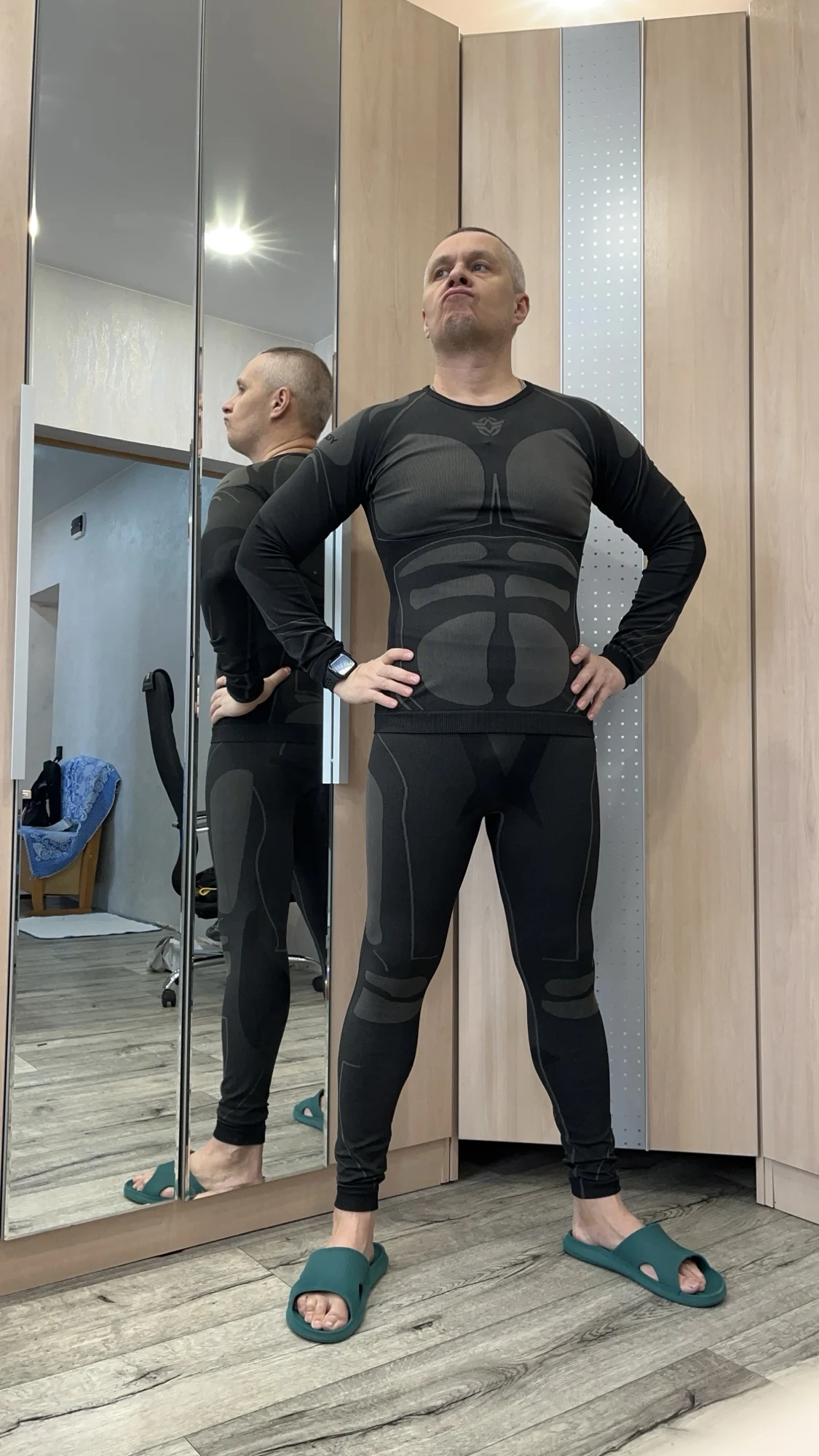 Заказ пришел в Ростов на Дону на 18 день. Заказываю повторно. Испытывал неоднократно при часовом треккинге ( на работу) майку, трико еще не пробовал. Приобретал для езды на велосипеде в холодное время года. Как опробую-отпишу дополнительно. Его ещё позиционируют как компрессионный тренировочный костюм. Трико ну серьезно компрессионное на мой взгляд, и длина на мой размер 1,76 м 76 кг даже великовата, пояс достаточно высокий, чтобы использовать на велосипеде. Пока доволен.SERGEY P. 22 февраля 2024