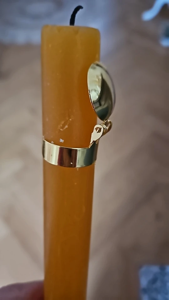 Заказ доехал за две недели через Укрпочту сам по себе, без объединения. Поэтому это только идеальная логистика от продавца. Для сужающихся свечей можно поджать и закрепить выше, но в целом такая ‘захлопка’ нужна в конце свечи. Цвет золота ближе к лимонному, не розовое золото.