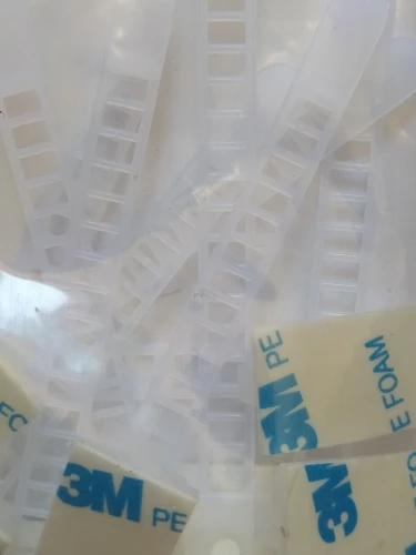 Convenient reusable cable ties, set of 10, fasten like a strap. It can be attached to the glued double-sided 3M adhesive tape, or it can be screwed onto a screw, there is a hole in the center for it. The strap is movable, length 8.5 cm, of which 7 cm with holes for the lock. Delivery two and a half weeks. All perfectly. Удобные многоразовые стяжки, в наборе 10 штук, застегиваются как ремешок. Можно закрепить на наклеенный двухсторонний 3М скотч, а можно прикрутить на шуруп, по центру есть под него отверстие. Ремешок подвижный, длиной 8,5см, из них 7см с отверстиями под замочек. Доставка две с половиной недели. Всё отлично.