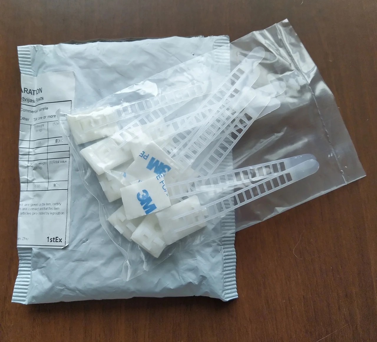До Казахстана дошло за 1 месяц. Крепления зажимы для кабелей и проводов. Клеется при помощи липучек. В комплекте 10 штук. В ассортименте есть два цвета, черный и белый. Трек номер отслеживался. Качество соответствует цене