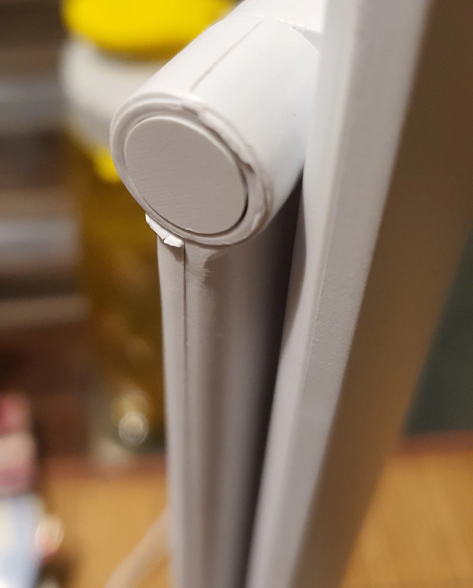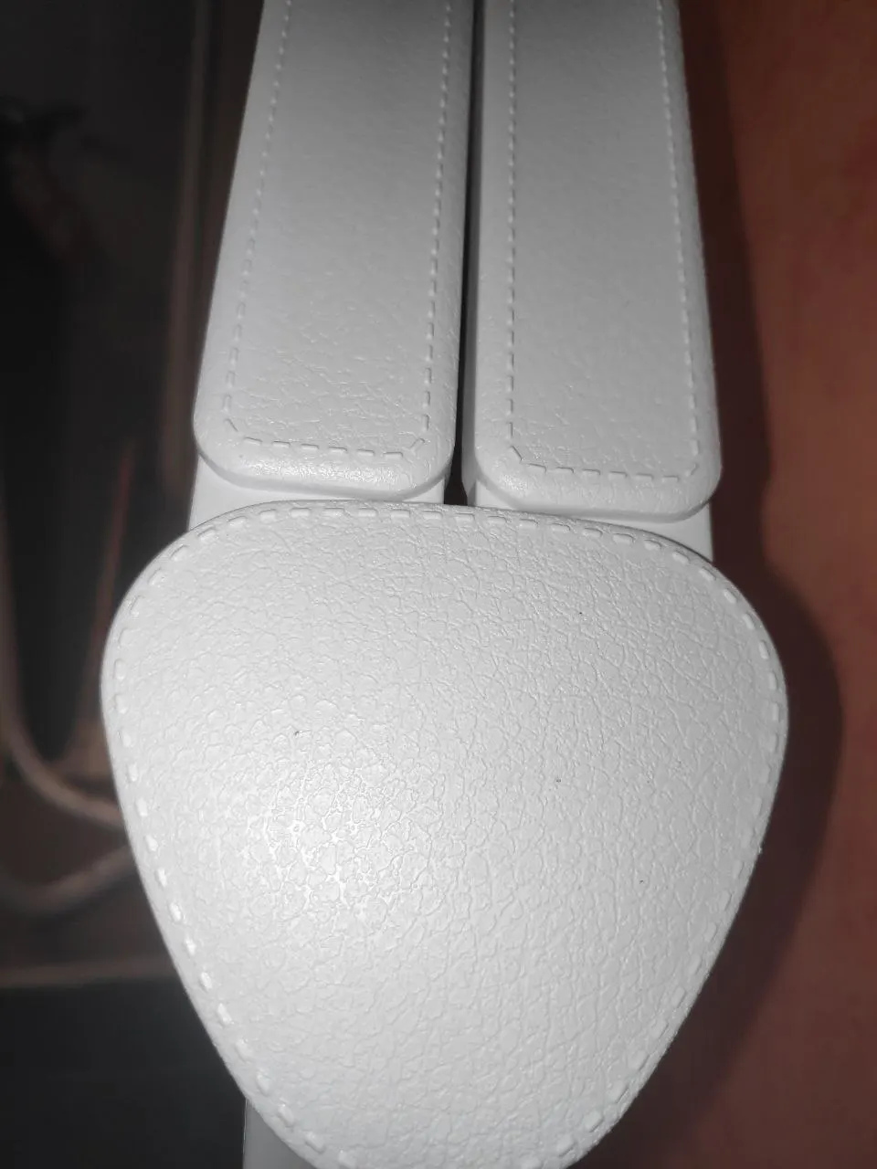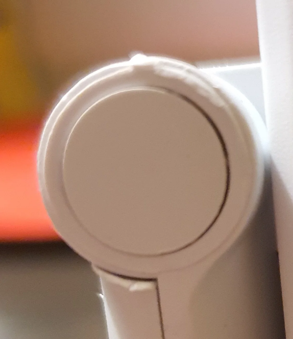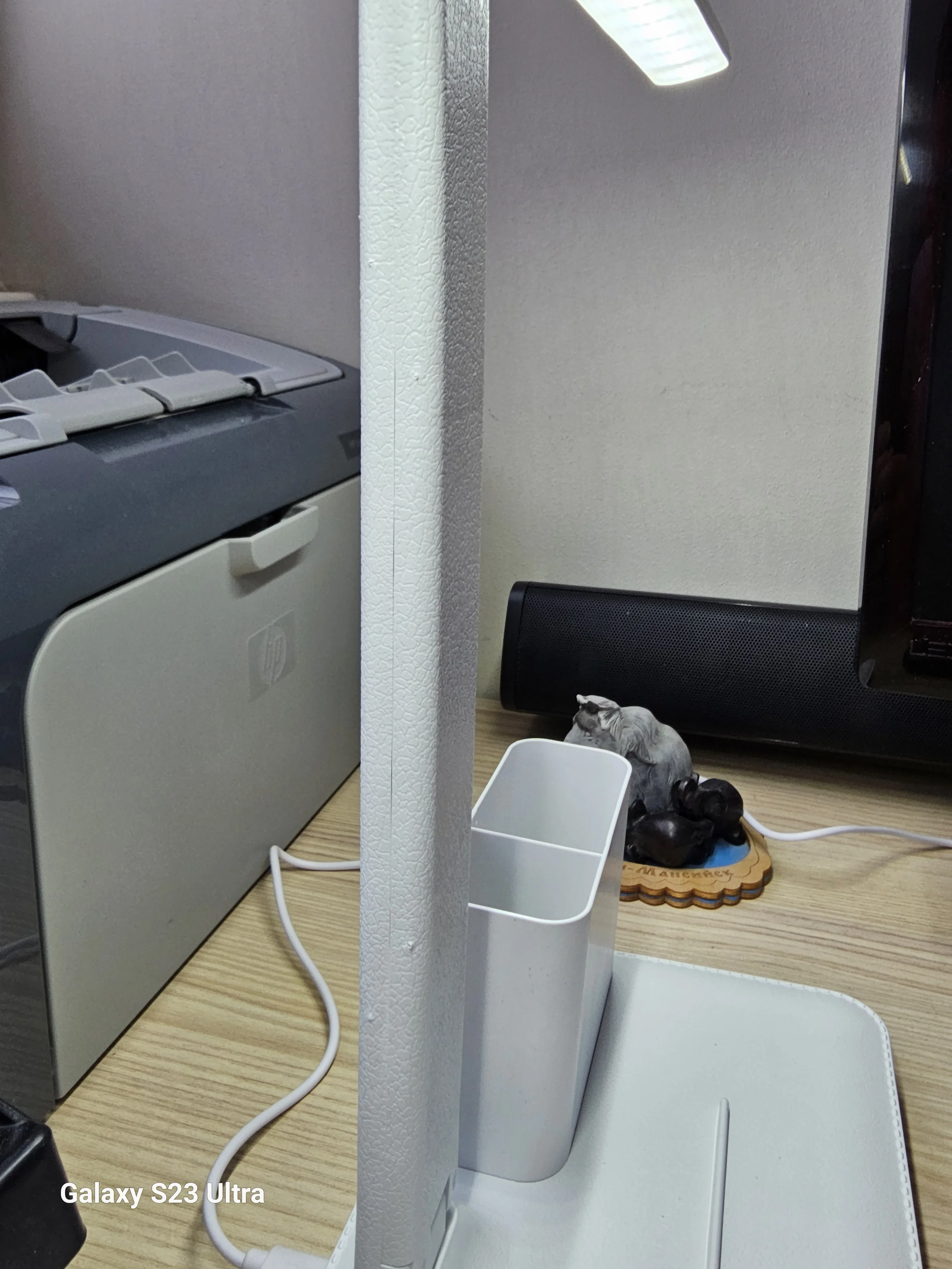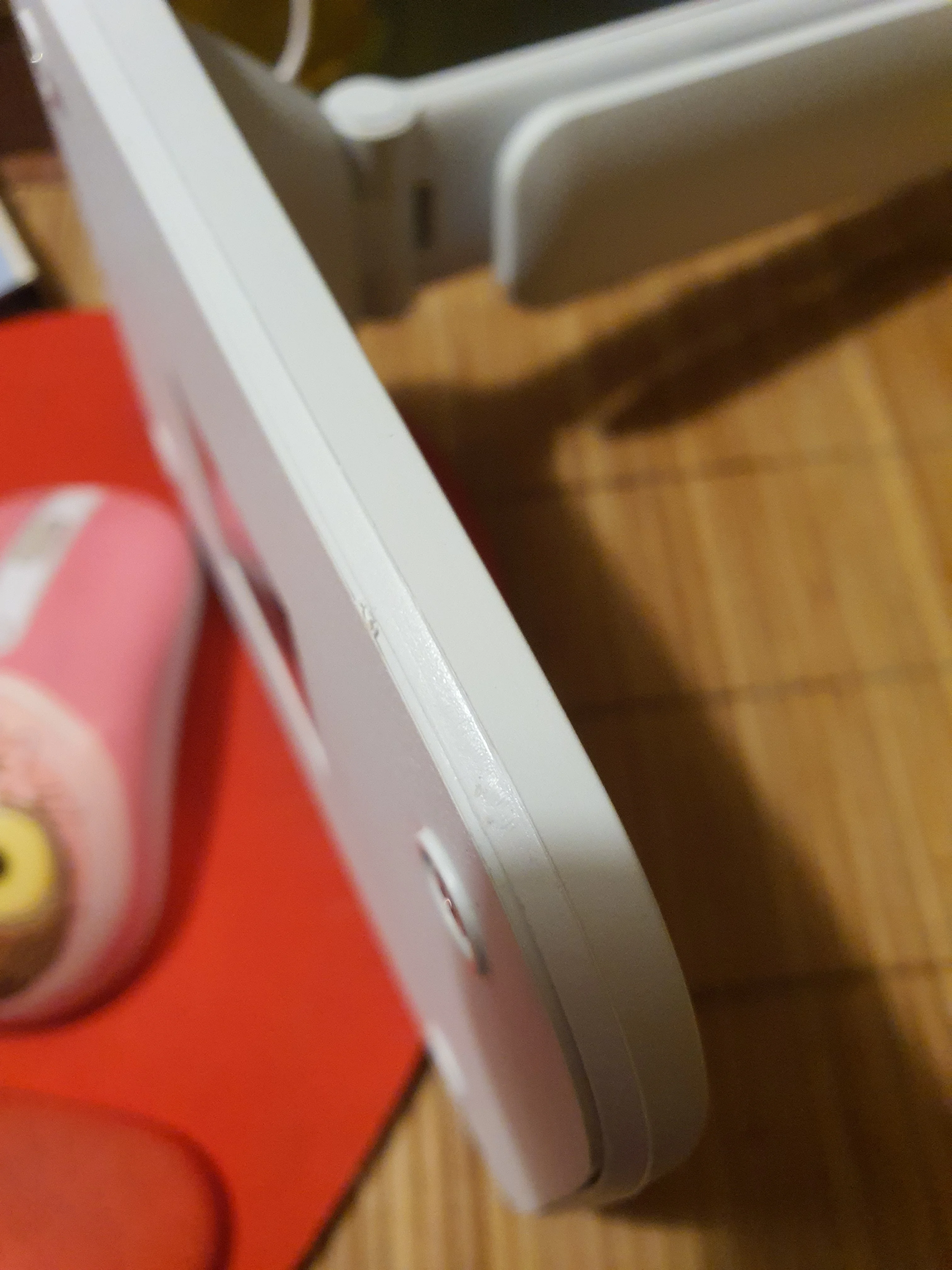светит холодным и тёплым светом, регулировка яркости. обработка с левой стороны лампы крайне грубая, заусенцы, задиры. Крепёж корпуса с той же левой стороны сломан, в результате вот такая щель, и корпус не скрепляется. экран без плёнки, сильно царапанный. у меня сильное подозрение, что лампа б/у