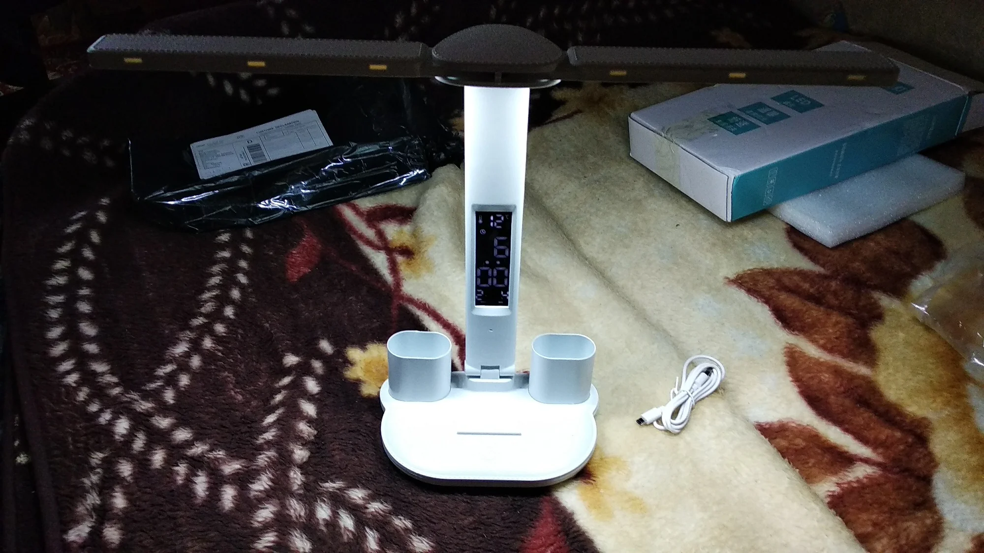 Отримав. Дякую продавцю. Дуже швидко доставили, практично за 2 тижні. Служба доставки по Україні - Міст Експрес. В принципі непоганий варіант. Плюси: - упакування ціле ( картонна коробка), лампа ціла/ - можна підключити до павербанку/ -світить в трьох режимах ( світле, тепле і комбіноване, при утримуванні кнопки включення регулювання яскравості)/ вбудований елемент 18650, додатково перевірю що по реальній його місткості ( при необхідності можливо додати та припаяти додатковий, є місце)/ По розмірам: по висоті 350мм, розліт світлодіодних панелей до 450 мм / Недоліки виробу на мій погляд полягають в наступному: - дуже " просяться" прорезинені ніжки вставки на основі для стійкості на поверхні, яких немає./ - " стакани" для кулькових ручок і олівців зовсім маленькі. Також треба дообважнити основу, дуже легка